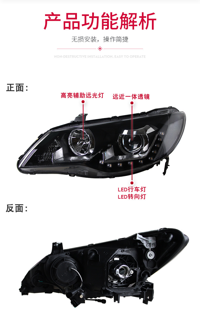 - Complete Package: Includes 1x Headlight Assembly (single side), exactly as pictured with LED DRL and turn signals. Please verify fitment details before purchasing.