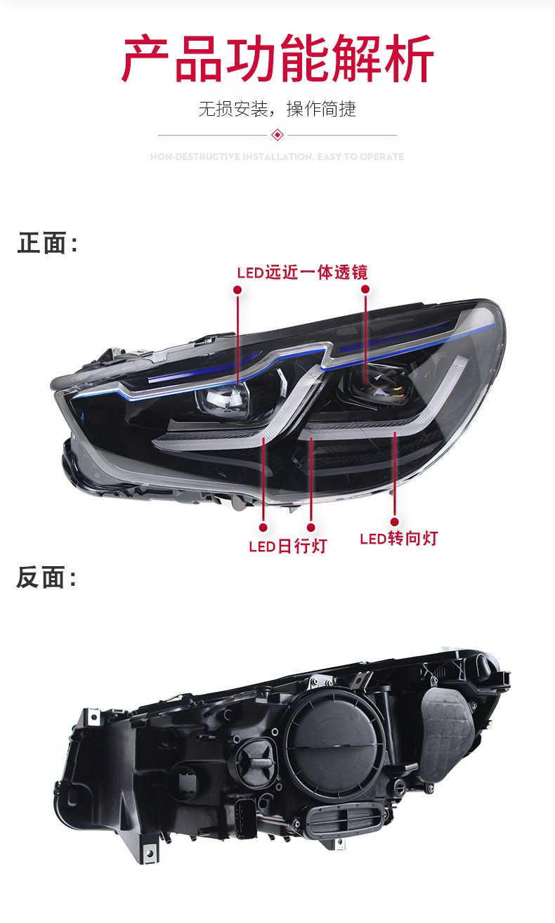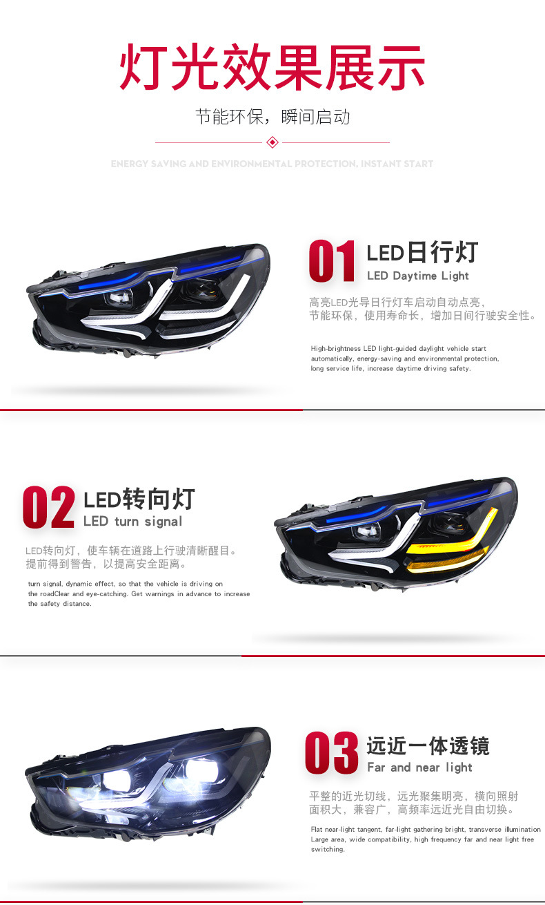 - Enhanced Aesthetics: Upgrade your vehicle’s front-end appearance with a modern design featuring sleek LED Daytime Running Lights (DRL) and dynamic turn signals, adding a sporty and luxurious touch.