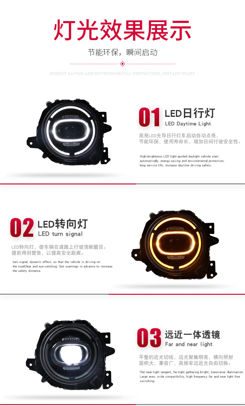 - Premium LED Illumination: Features advanced LED technology for superior brightness, includes integrated LED Daytime Running Lights (DRLs) and dynamic turn signal functionality, enhancing visibility and safety.