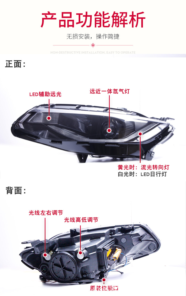 - Advanced Lighting Technology: Equipped with projector lenses for superior light output and a focused beam pattern, compatible with Xenon HID conversion.
