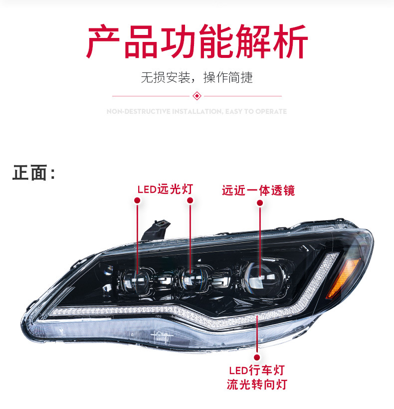- Enhanced Aesthetics & Safety: Features bright, energy-efficient LED light source with integrated Daytime Running Lights (DRL) and dynamic turn signal functionality, providing modern style and improved visibility on the road.