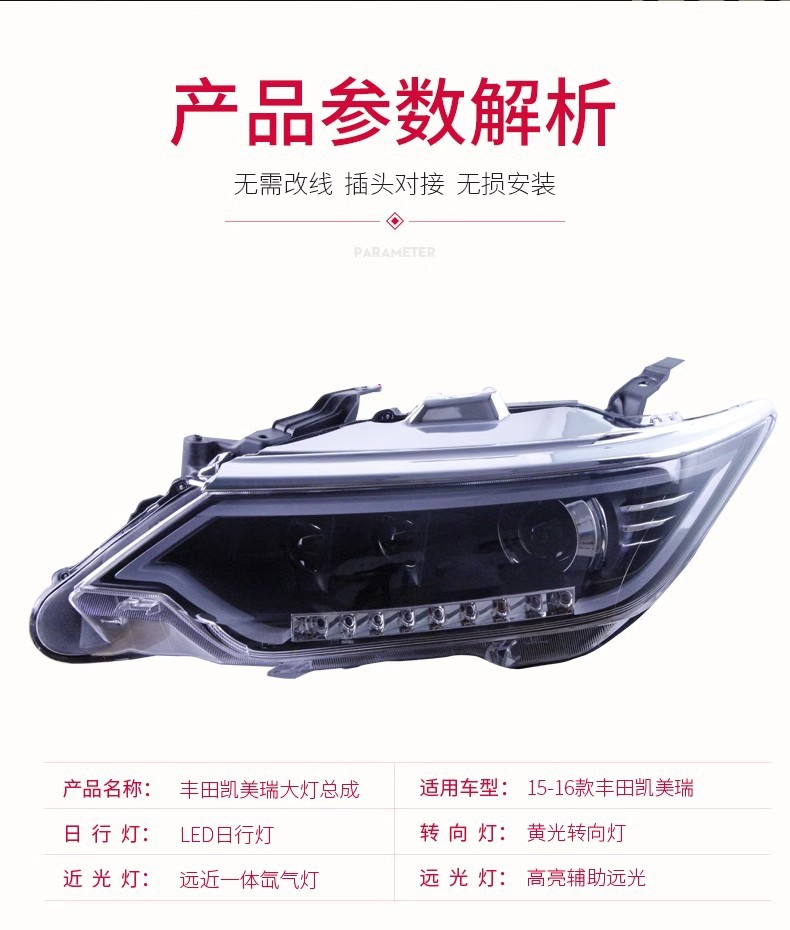 - What’s Included: One headlight assembly (single side) with all necessary components for installation. Upgrade your Camry’s front-end aesthetics and safety with this high-performance lighting solution.