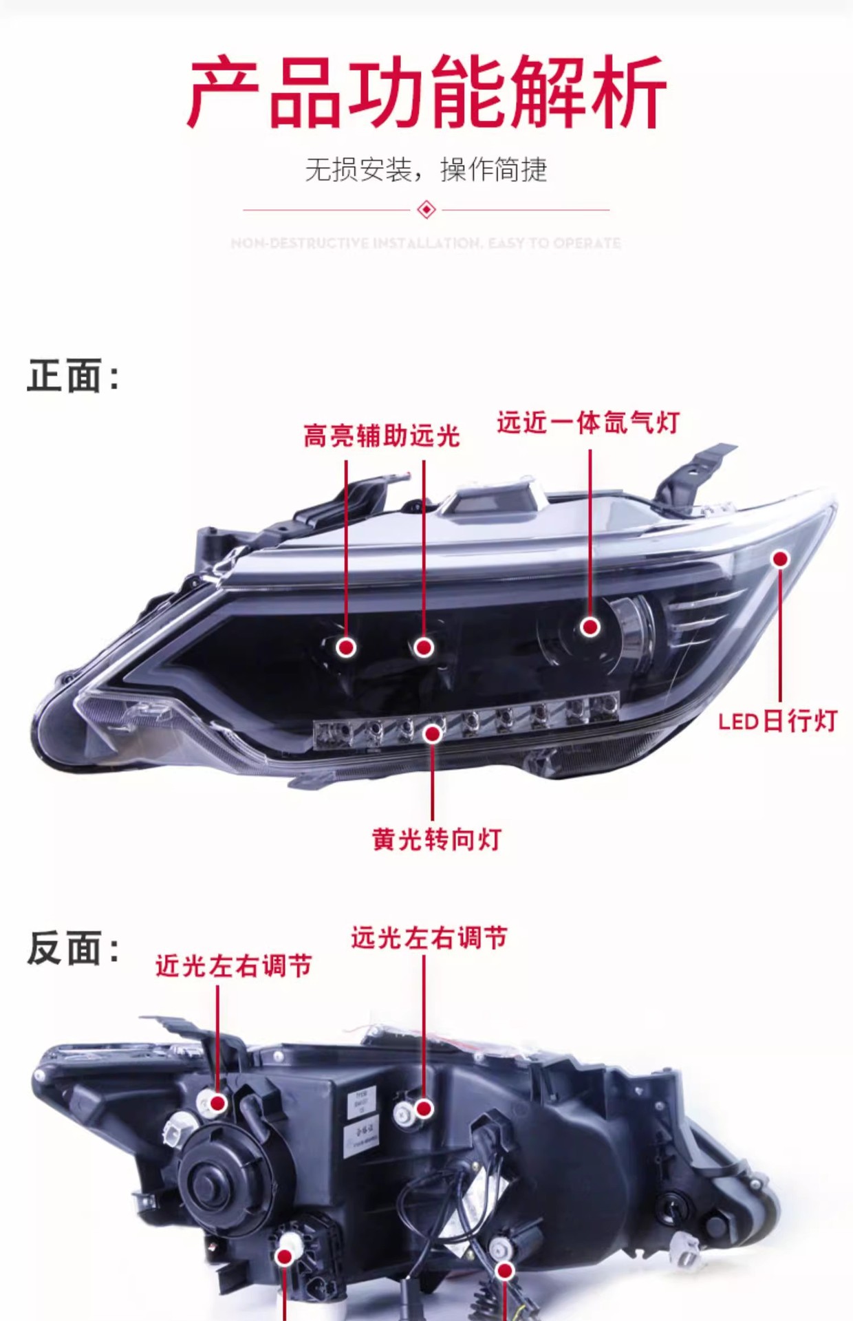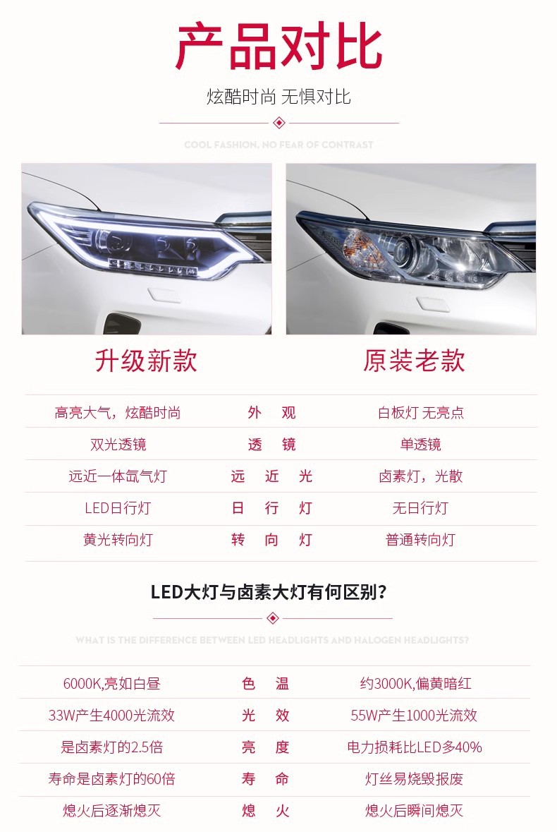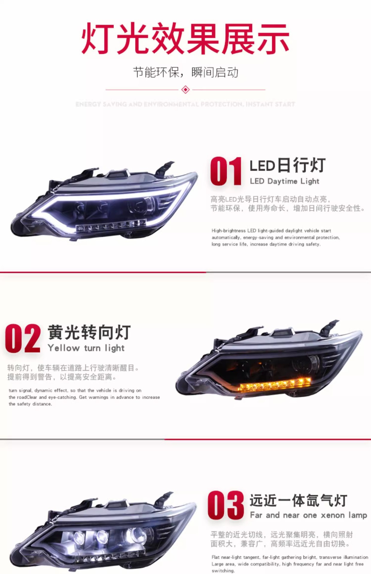 - Enhanced Visibility & Style: Features integrated LED Daytime Running Lights (DRL) and dynamic turn signals, along with projector xenon lamps for superior illumination and a modern, aggressive look.