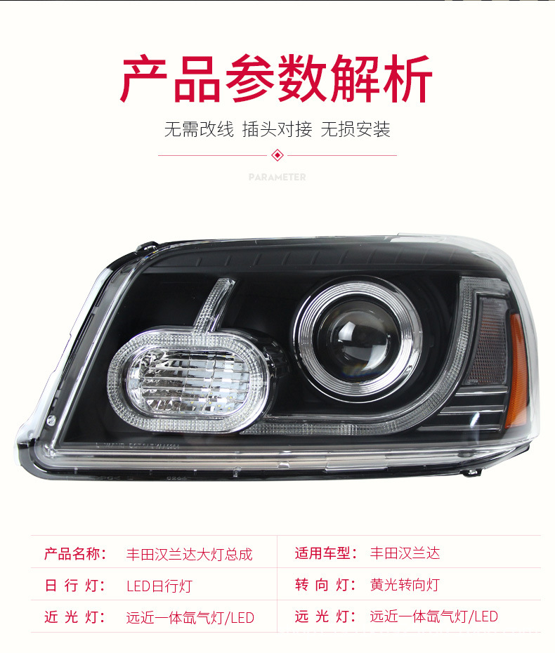 LED DRL Xenon Headlight Assembly for Toyota Highlander 2000-2006