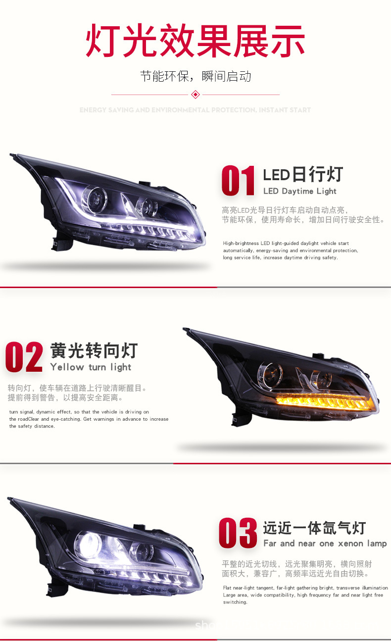 LED Daytime Running Light Bi-Xenon Projector Headlight for Chevrolet Cruze Classic (2015)