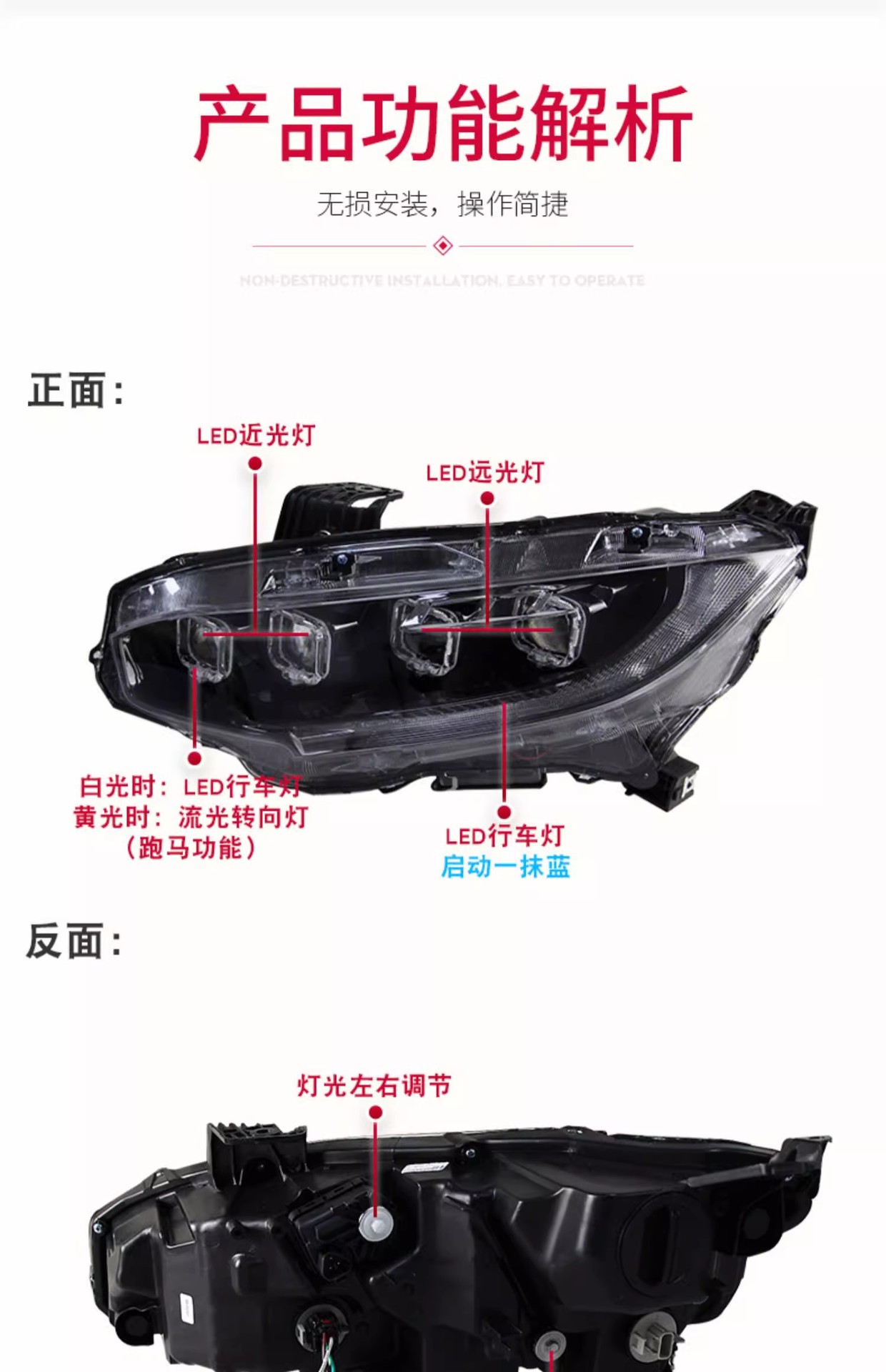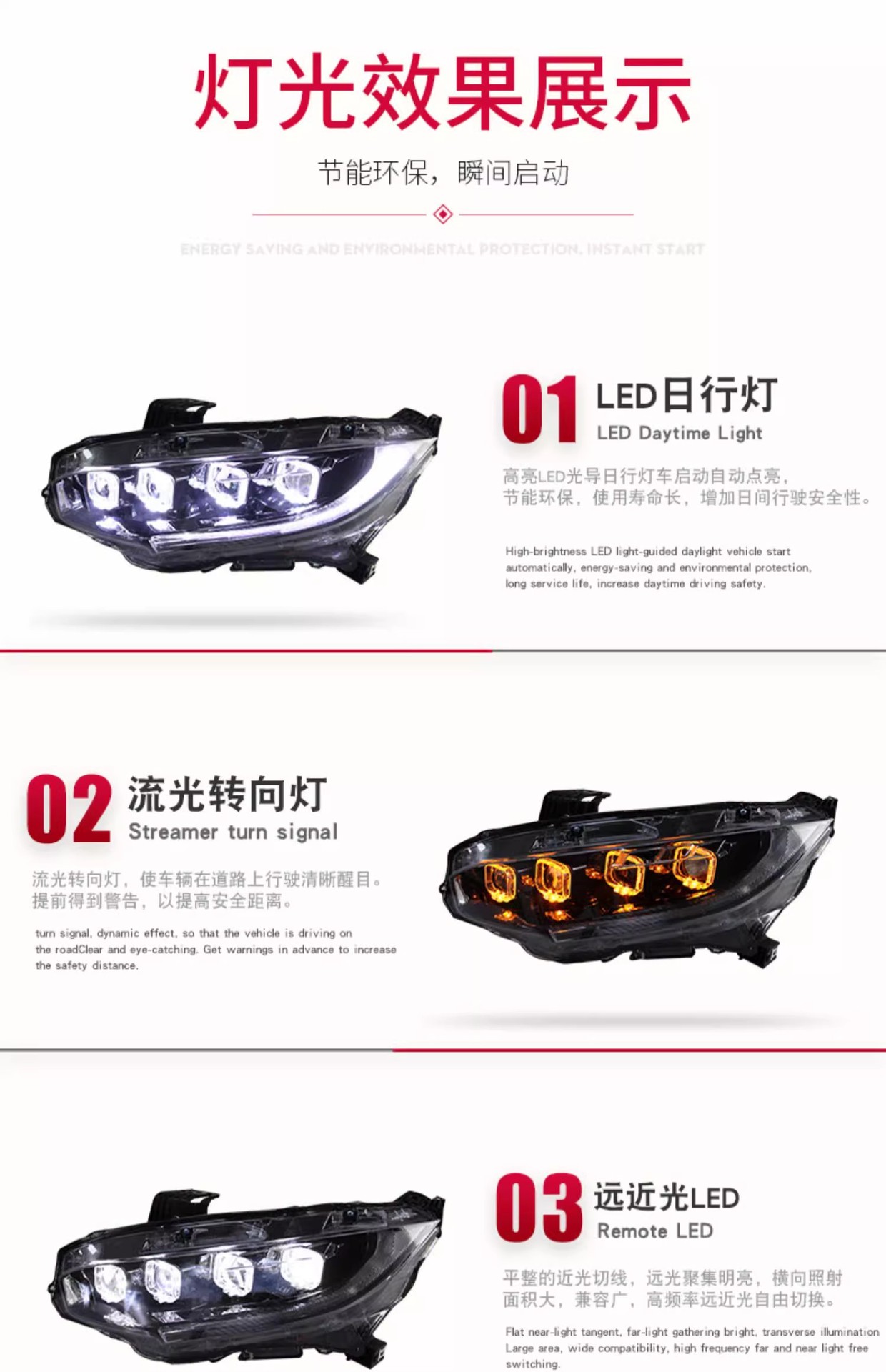 - Enhanced Aesthetics & Style: Features a unique Bugatti-style design with bright LED daytime running lights and dynamic flowing turn signals, significantly upgrading your Civic’s front-end appearance and making it stand out.