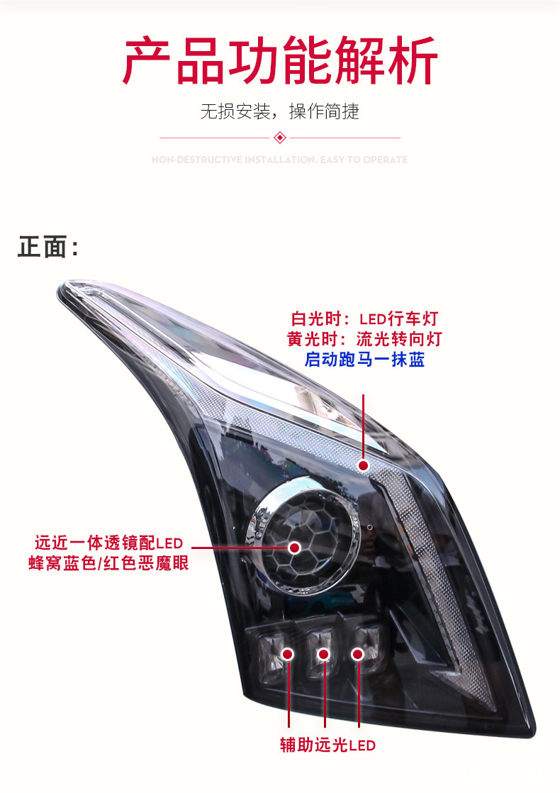 - Easy Installation: Direct replacement for your original headlight assembly, offering a straightforward, non-destructive installation process without the need for complex modifications.