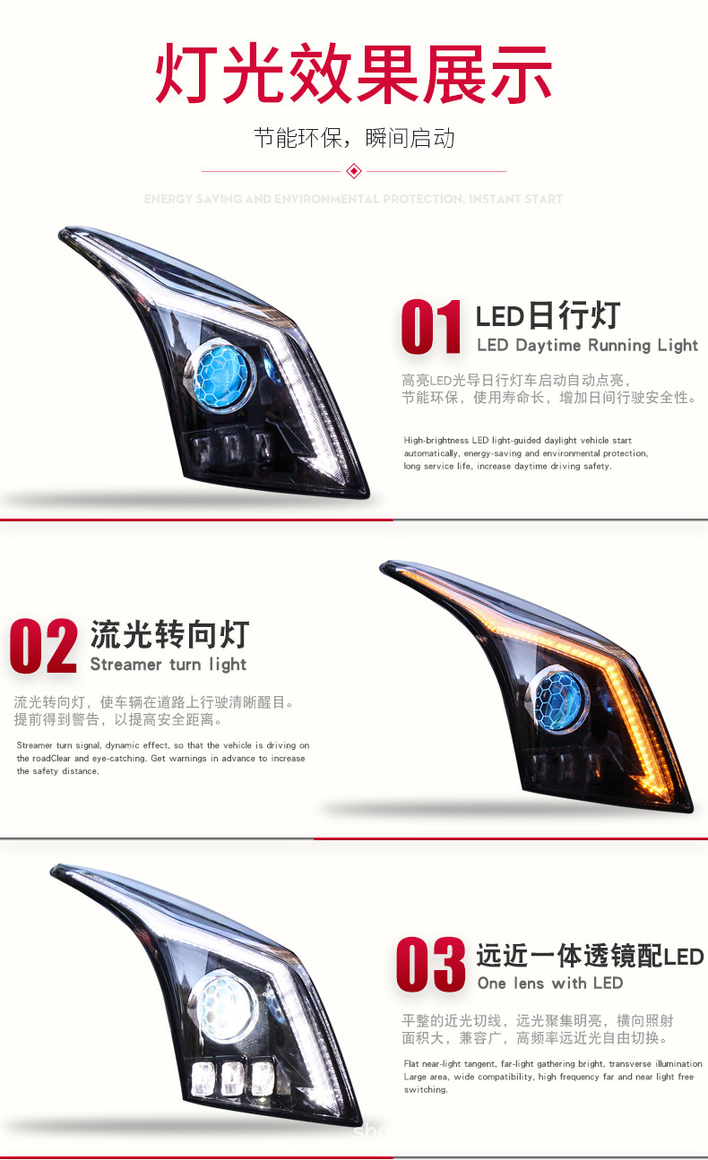 LED Daytime Running Light Headlight Assembly GTR Style for Cadillac ATSL