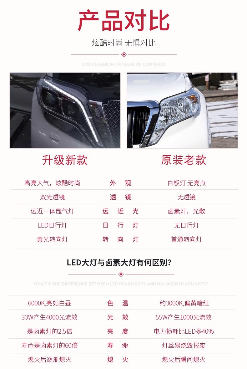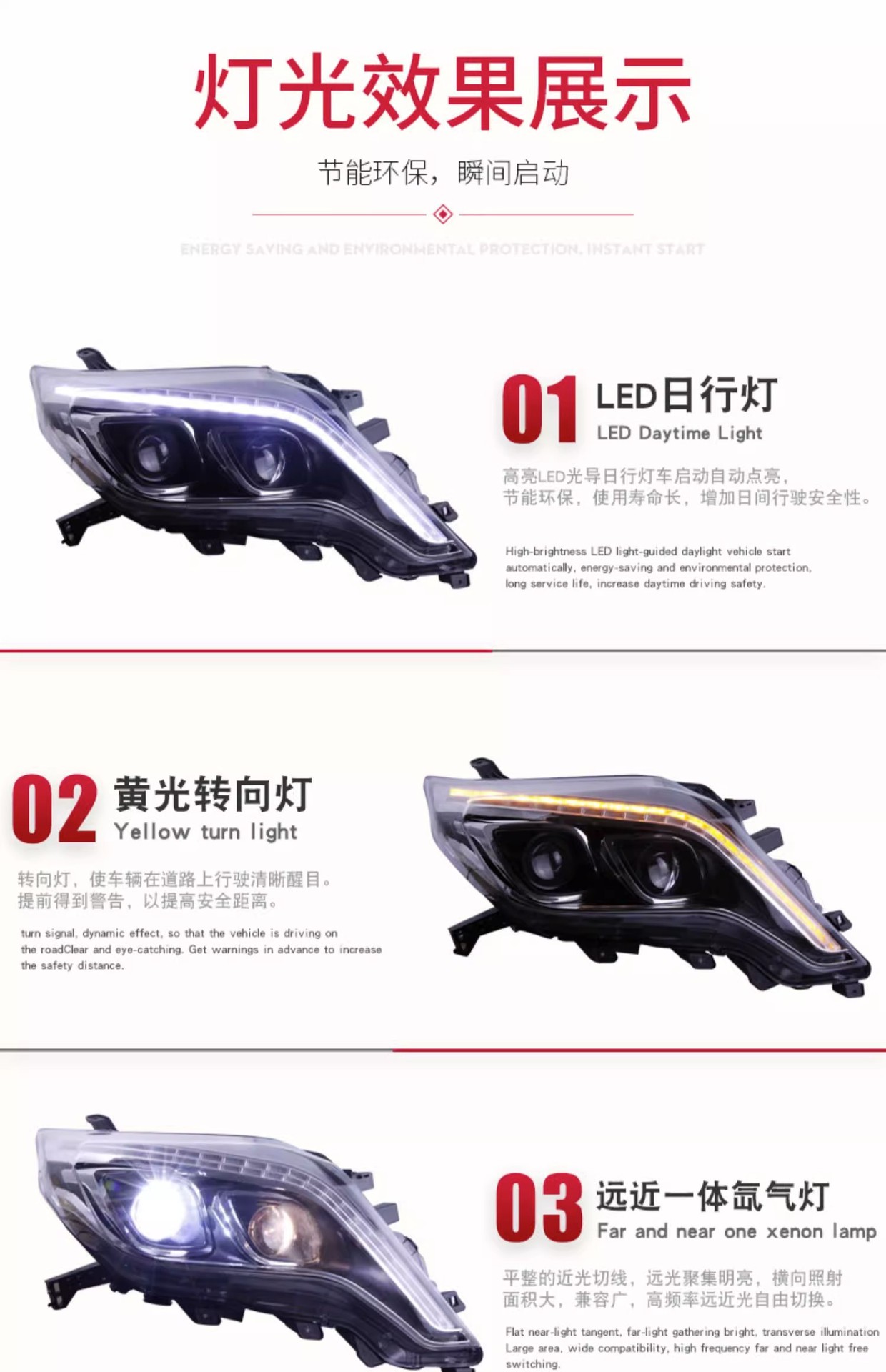 - Performance-Driven Design: Equipped with high-brightness LED and Bi-Xenon technology to improve nighttime illumination and driving safety.