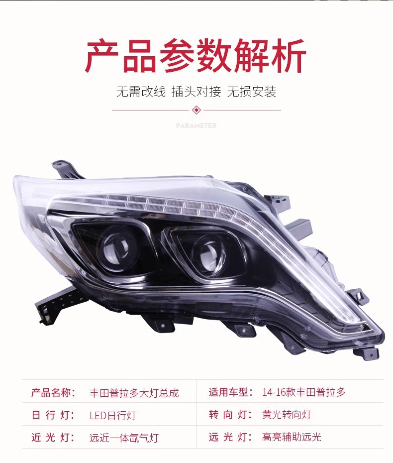 LED Daytime Running Light Headlight Assembly with Bi-Xenon Projector for Toyota Prado 2014-2017
