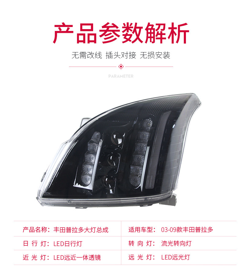 - Modernized Aesthetics: Upgrade your vehicle’s appearance with a sleek projector headlight design, providing a contemporary and aggressive look to your older Prado LC120.