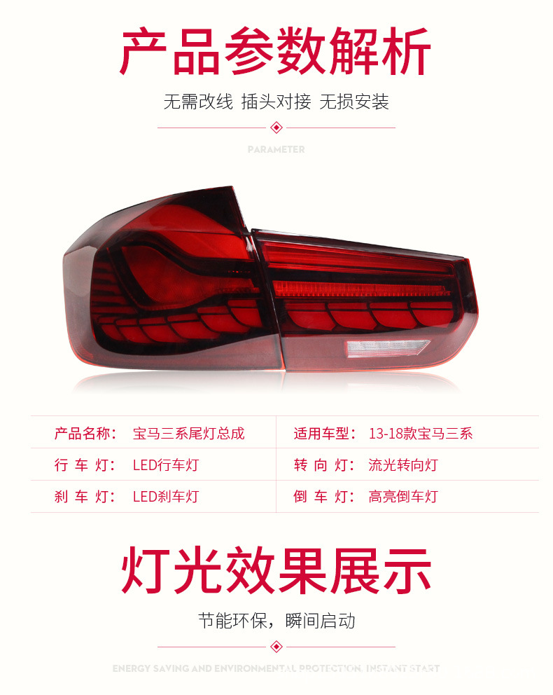 LED Dragon Scale Flowing Turn Signal Taillight Assembly for BMW 3 Series F30 F35 (2013-2019)