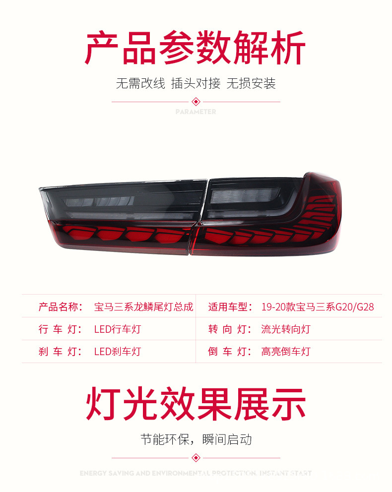LED Dragon Scale Flowing Turn Signal Tail Light Assembly for BMW 3 Series G20 G28 2019-2020