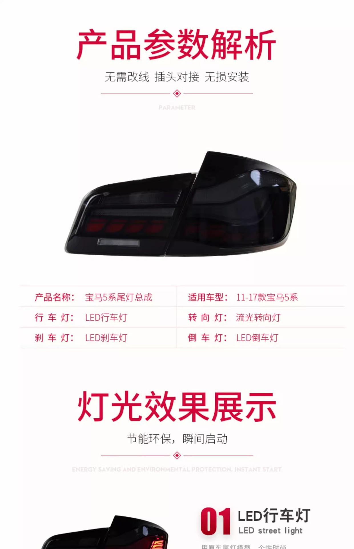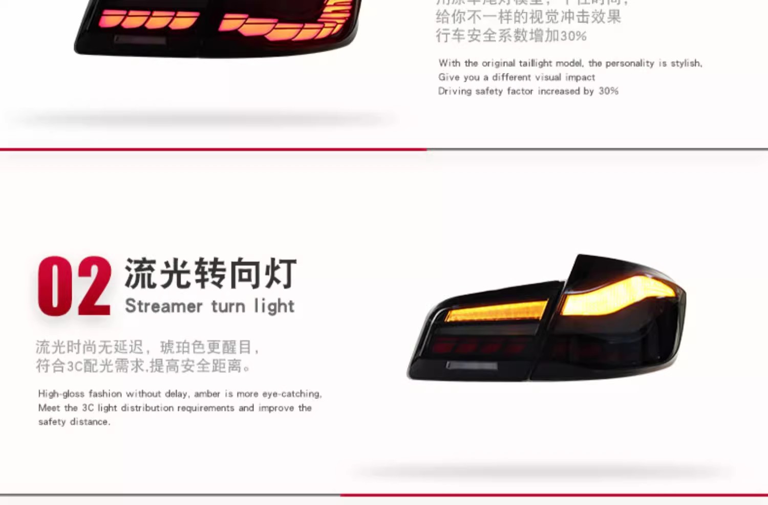 - Enhanced Aesthetic Appeal: Features a unique Dragon Scale LED design with flowing turn signals, transforming the rear appearance of your BMW 5 Series F10/F18 with a modern, stylish look.