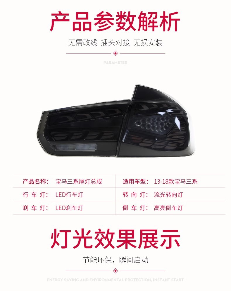 LED Dragon Scale Tail Light Assembly with Dynamic Turn Signals for BMW 3 Series F30 F35 (2012-2018)