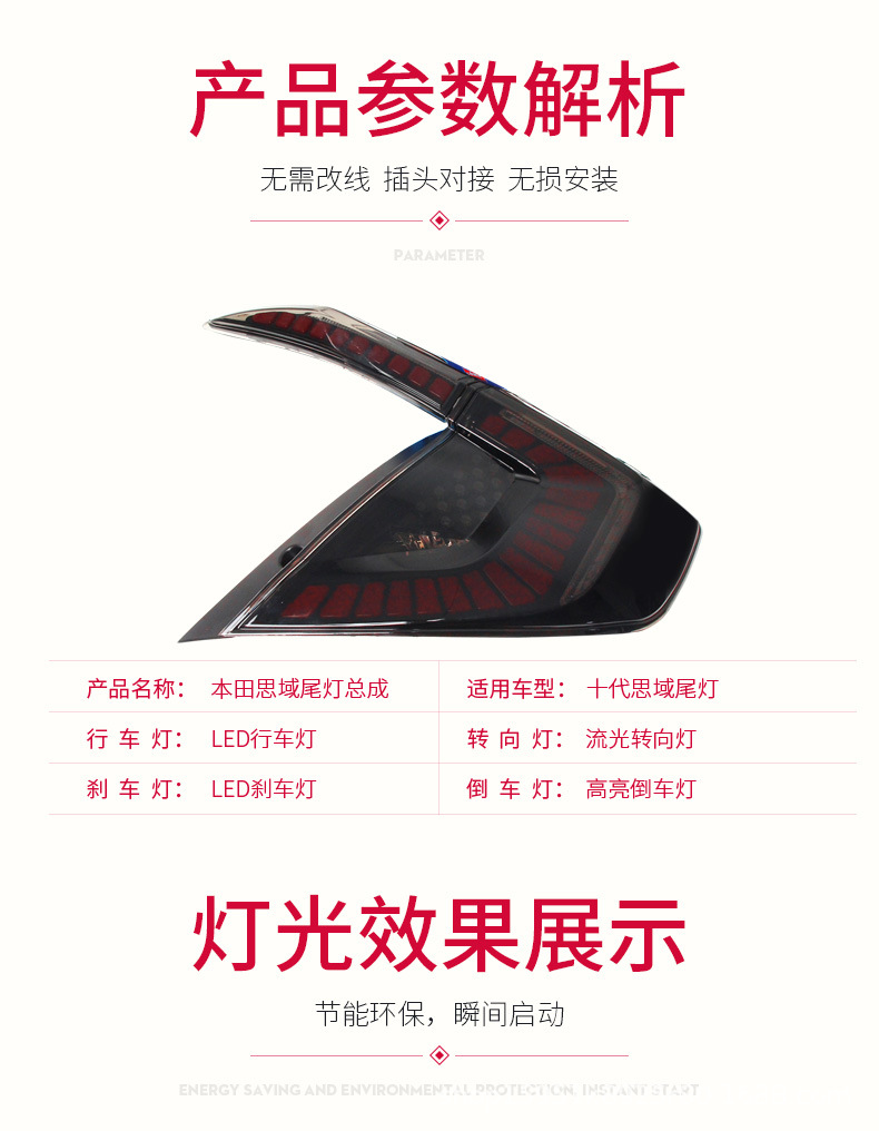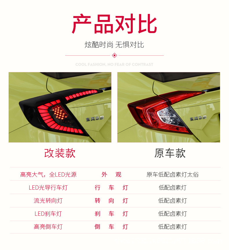 - Enhanced Aesthetics & Style: Features unique dragon scale design with available smoked or clear housing options, upgrading your Civic’s rear appearance with a modern and aggressive look.