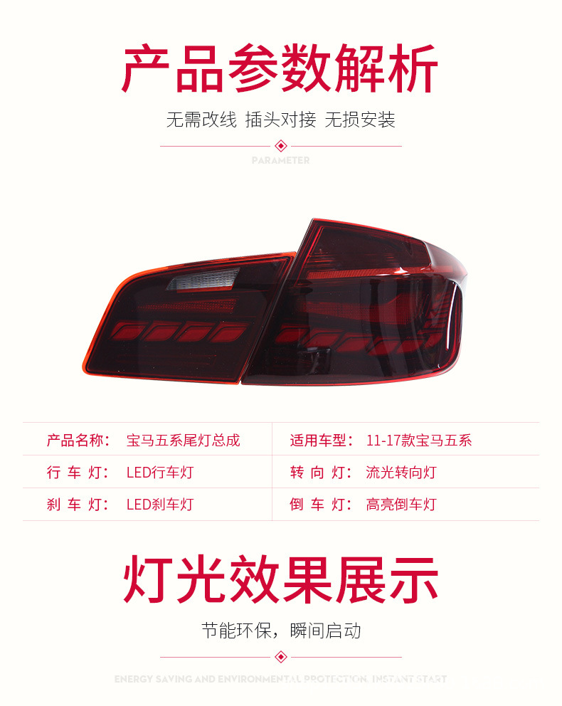 - Complete Set & Enhanced Visibility: This packaged set includes both left and right tail light assemblies, offering a significant upgrade in rear visibility and a distinctive, updated look for your BMW 5 Series.