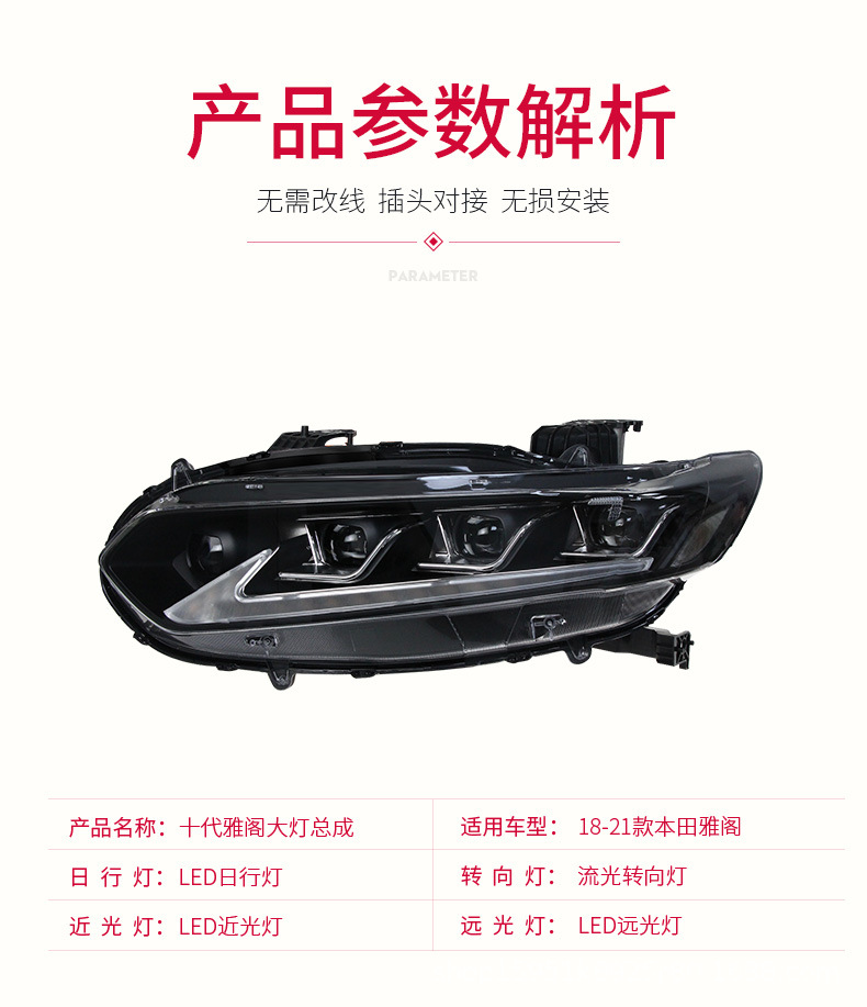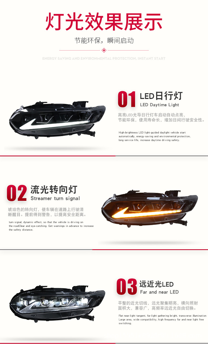 LED Dual Beam Projector Headlight Assembly for Honda Accord 10th Gen (2018-2021) with Flowing Turn Signal