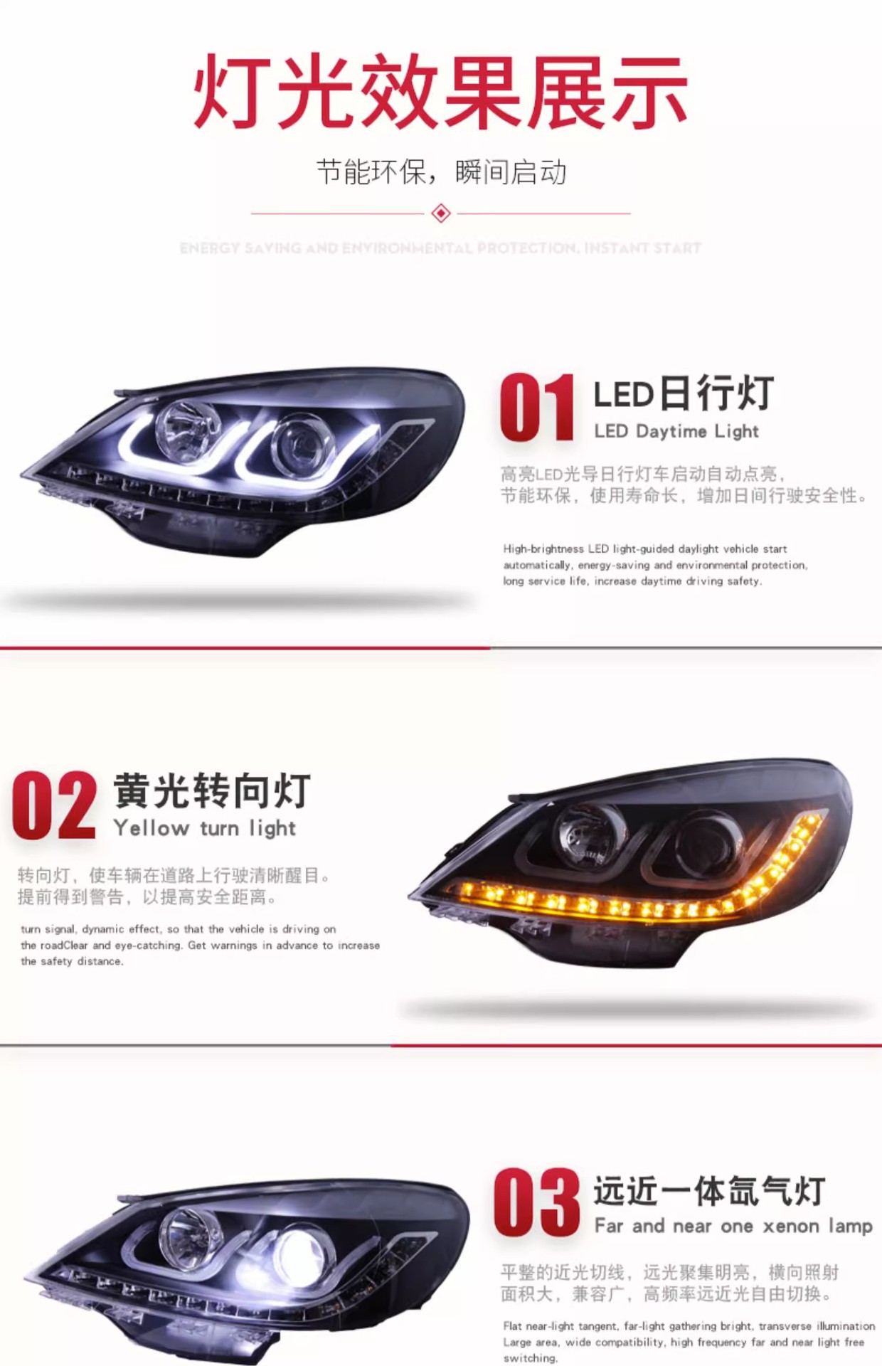LED Dual U-Shape DRL Projector Xenon Headlight Assembly for Volkswagen Lavida 2008-2011