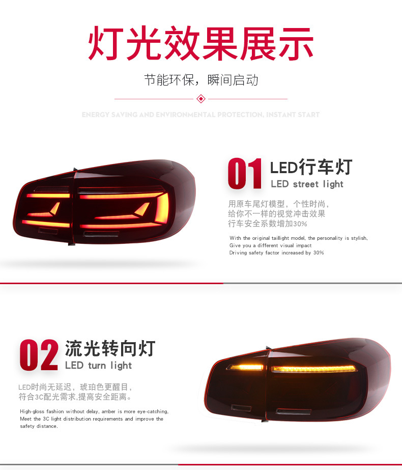 LED Dynamic Turn Signal Taillight Assembly for Volkswagen Tiguan (2013-2017)