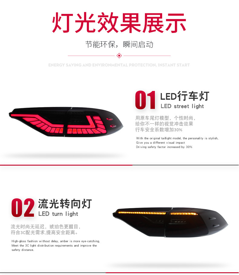 - Enhanced Styling & Safety: Upgrade your Corolla’s appearance with a modern, stylish look. The sequential turn signals and integrated strip lights add a distinctive, high-end aesthetic while significantly improving signaling clarity for other drivers.