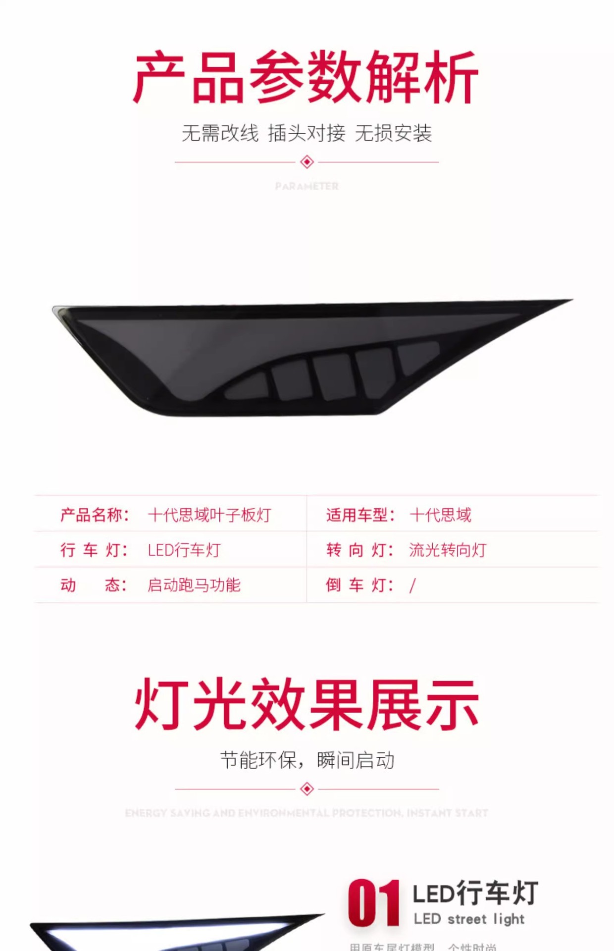 LED Fender Side Marker Light Turn Signal Lamp for 10th Gen Honda Civic Sedan Hatchback