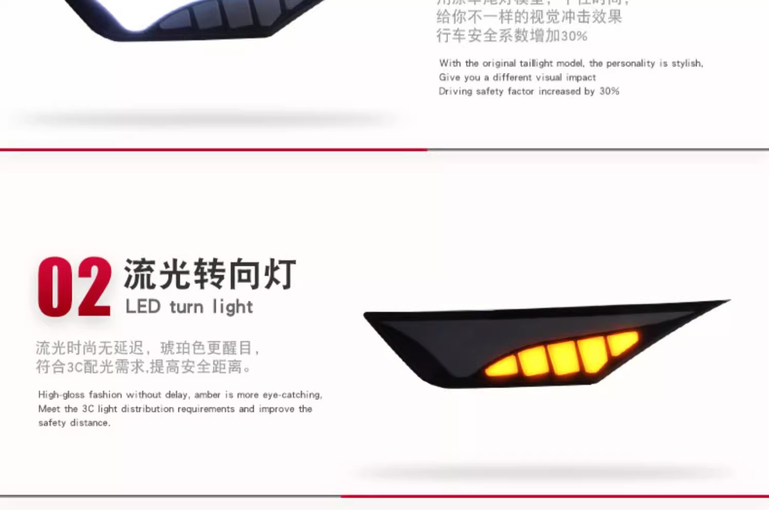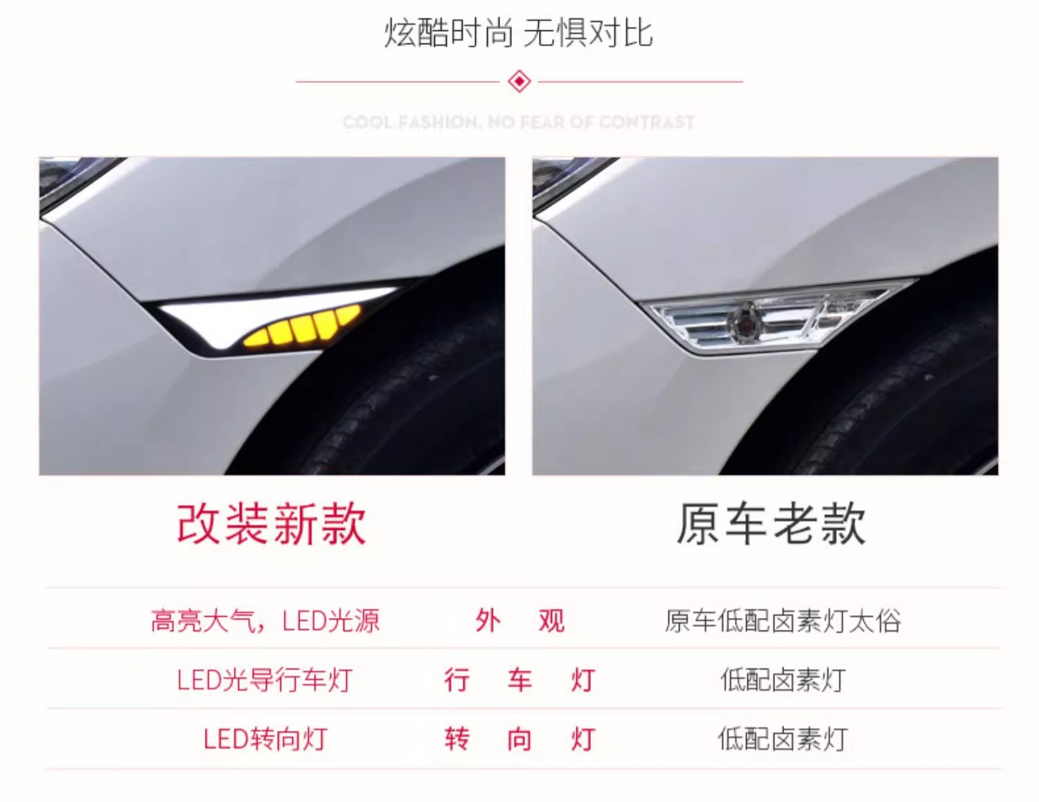 - Dynamic LED Styling: Features bright white LED running lights and dynamic amber sequential turn signals, enhancing your vehicle’s aesthetic with a modern, eye-catching flow effect for increased visibility and style.