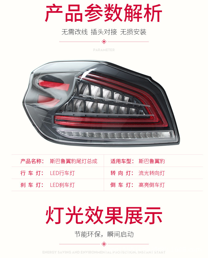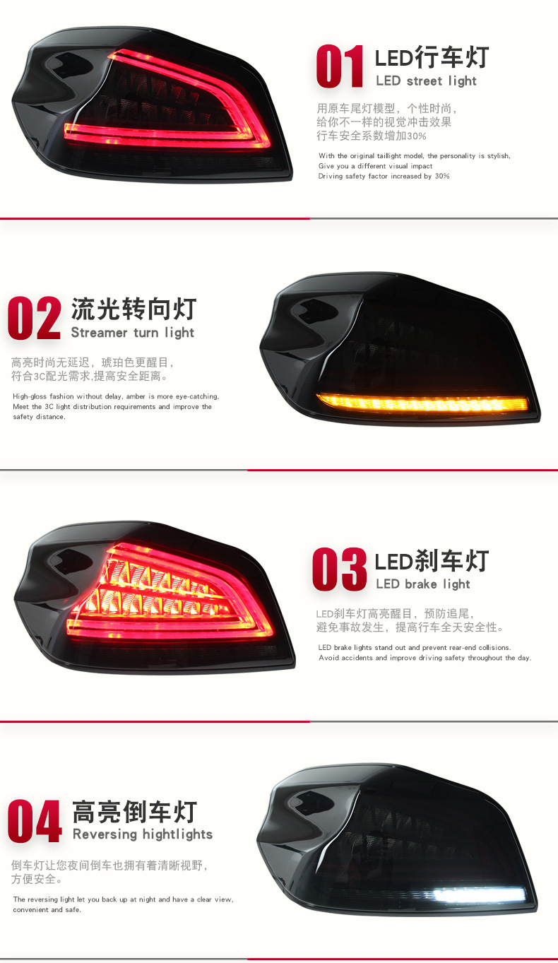 LED Fiber Optic Tail Light Assembly Sequential Turn Signal for Subaru Impreza WRX