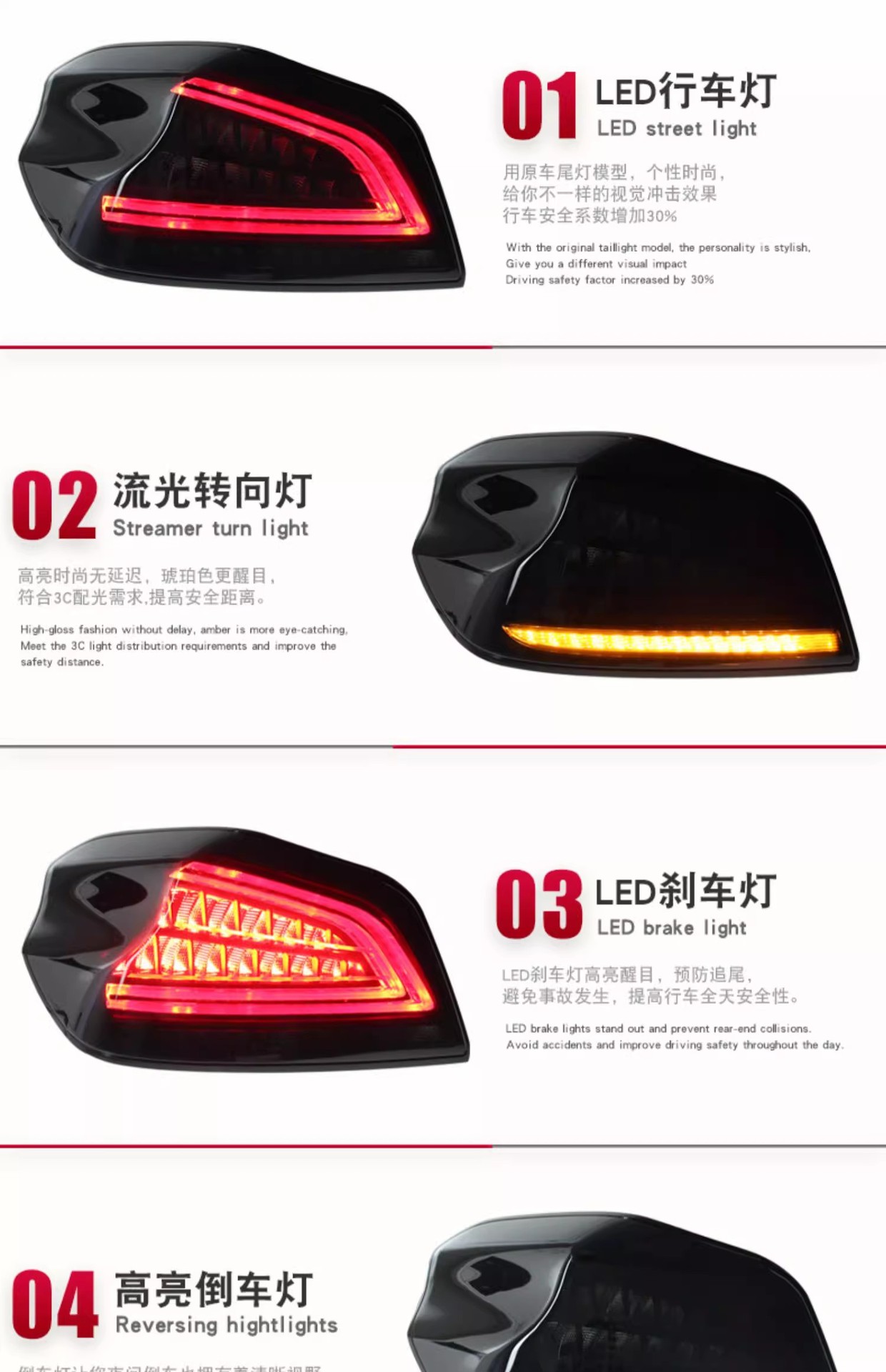 LED Fiber Optic Tail Light Assembly Sequential Turn Signal for Subaru Impreza WRX