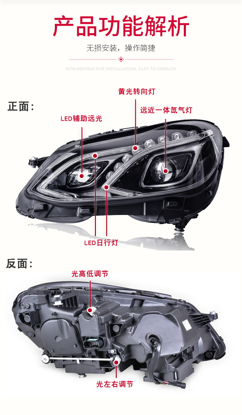 - Precise Fitment: Specifically designed for Mercedes-Benz E-Class W212 E200 E260 models from 2009 to 2016, perfect for upgrading low-spec to high-spec headlight configurations.