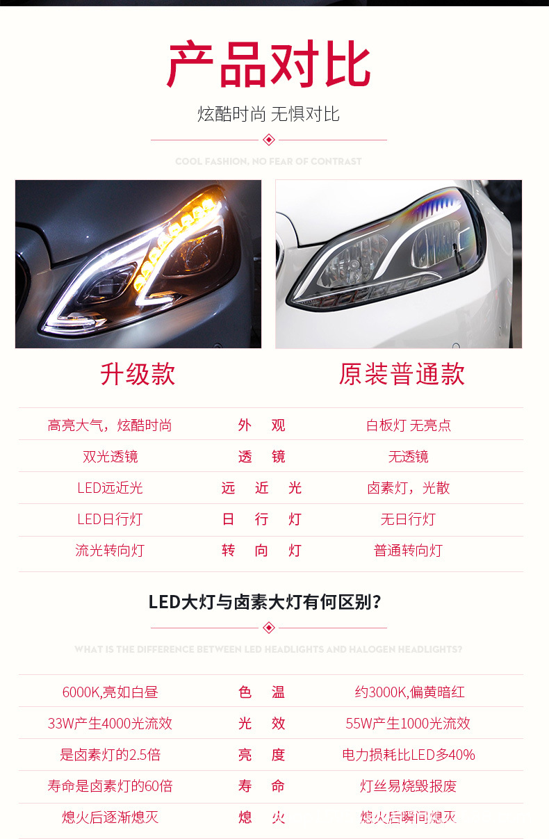 LED Headlight Assembly Upgrade for Mercedes-Benz E-Class W212 E200 E260 (2009-2016) Left & Right Side