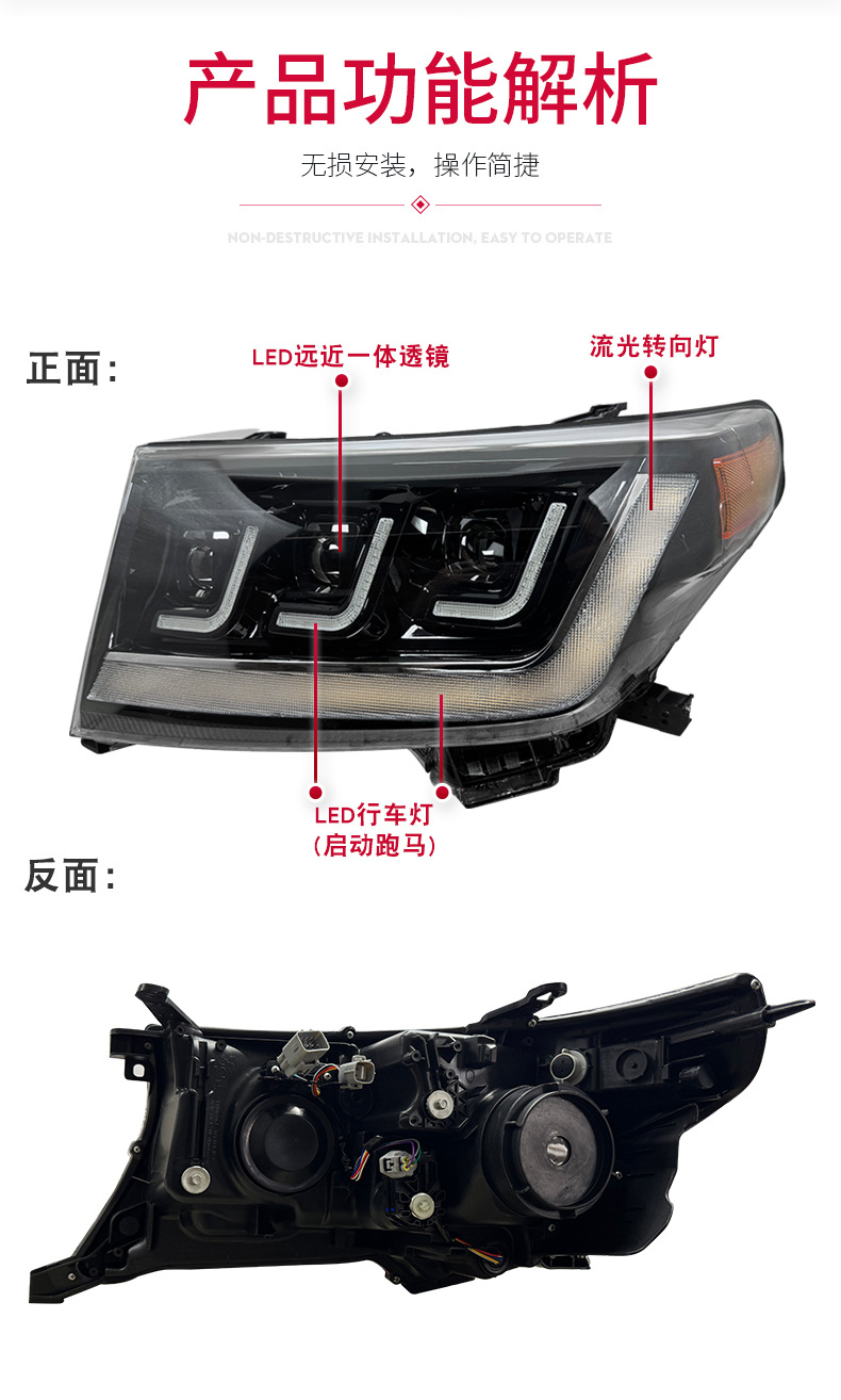 - Complete Headlight Kit: Includes a complete set of LED headlight assemblies (one pair), offering a comprehensive solution to refresh and enhance the front end of your Land Cruiser LC200.