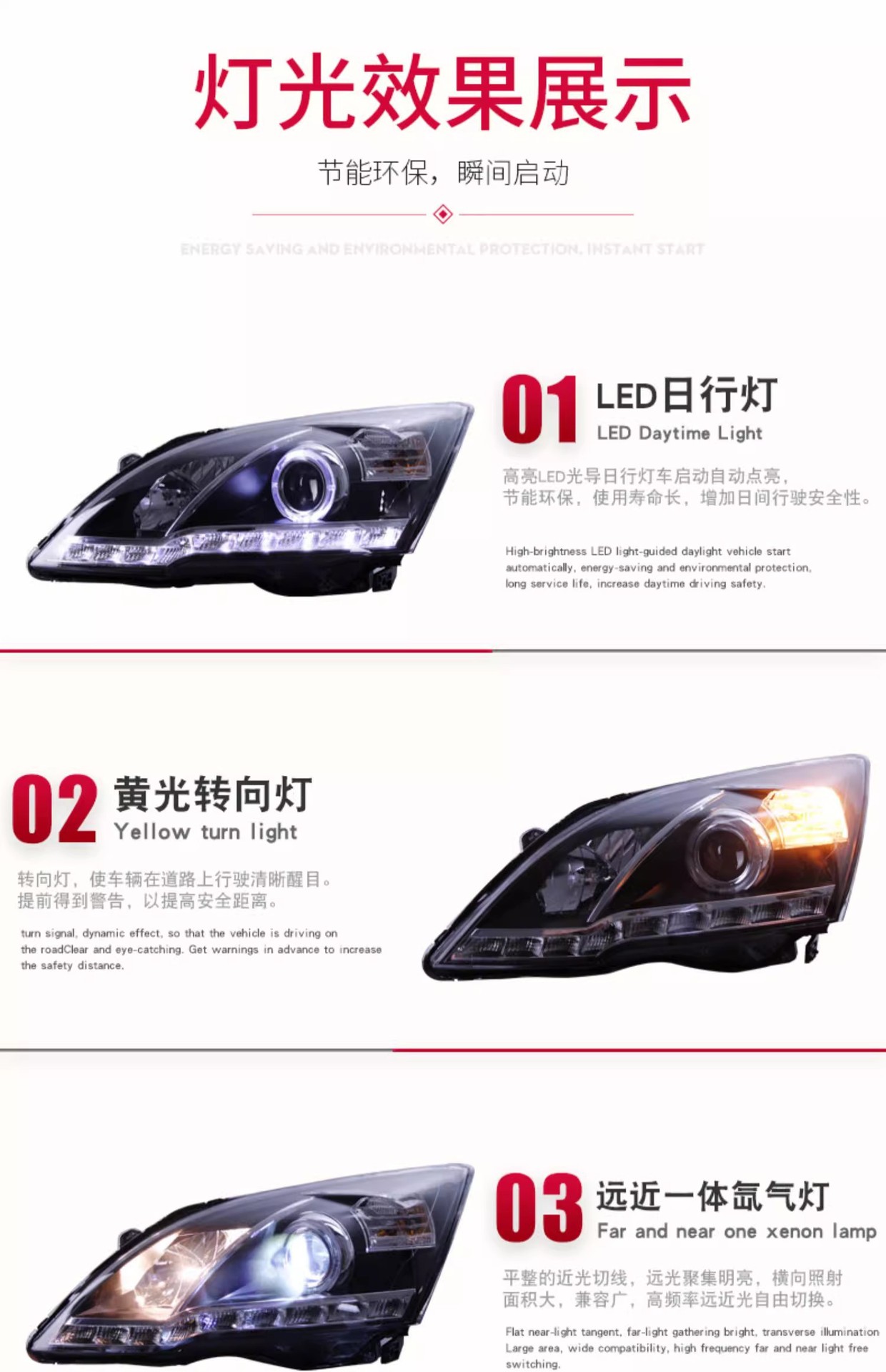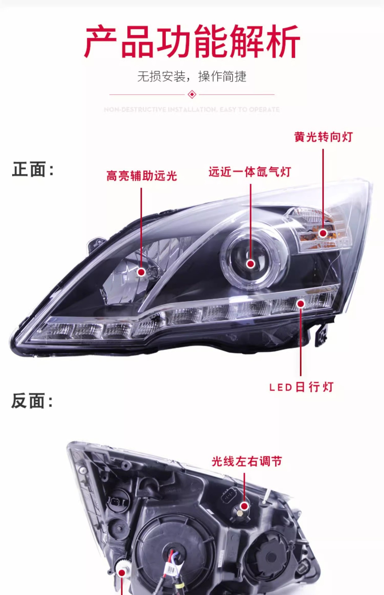 LED Headlight Assembly with Angle Eye DRL Xenon Lens for Honda CRV 2007-2011
