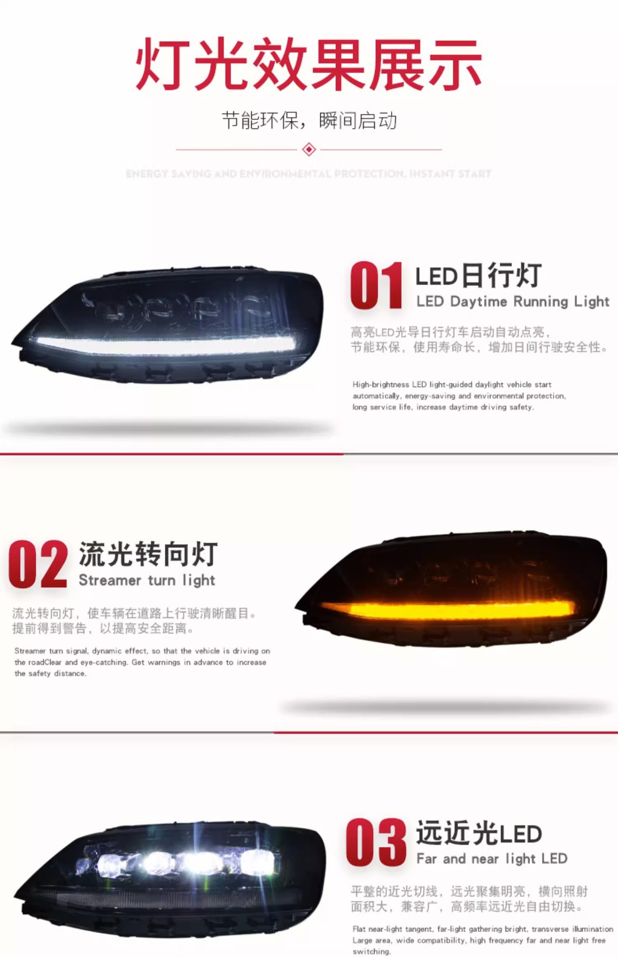 - Advanced Lighting Technology: Features full LED matrix with crystal projector lens, providing superior illumination and enhanced visibility on the road.