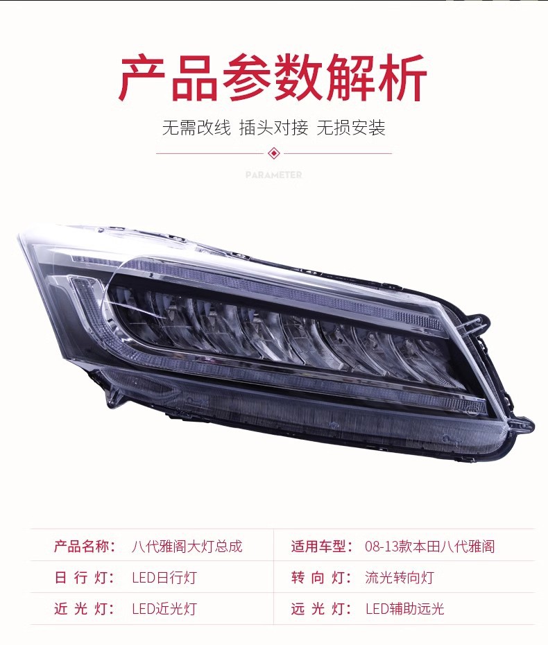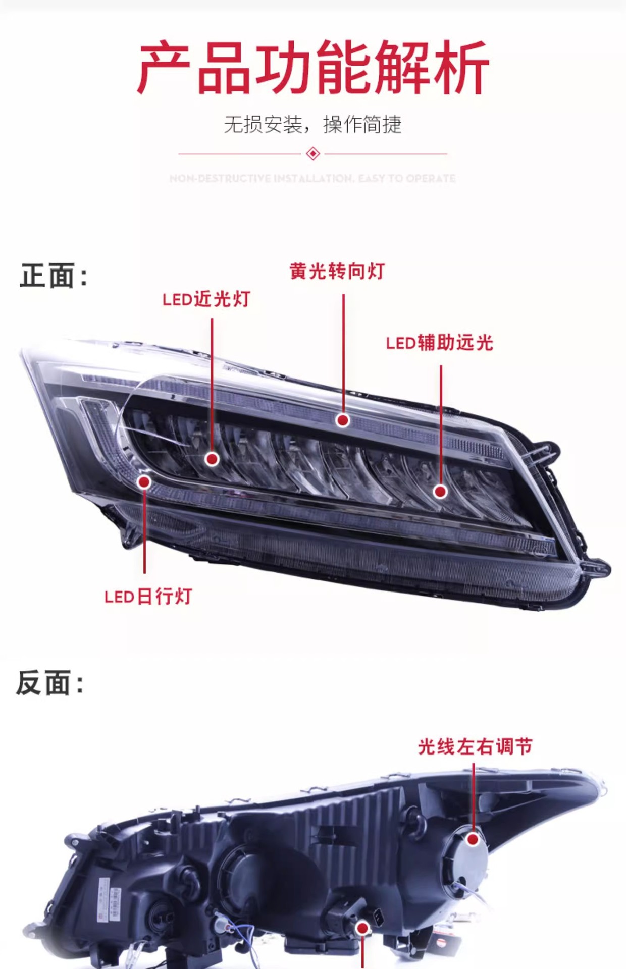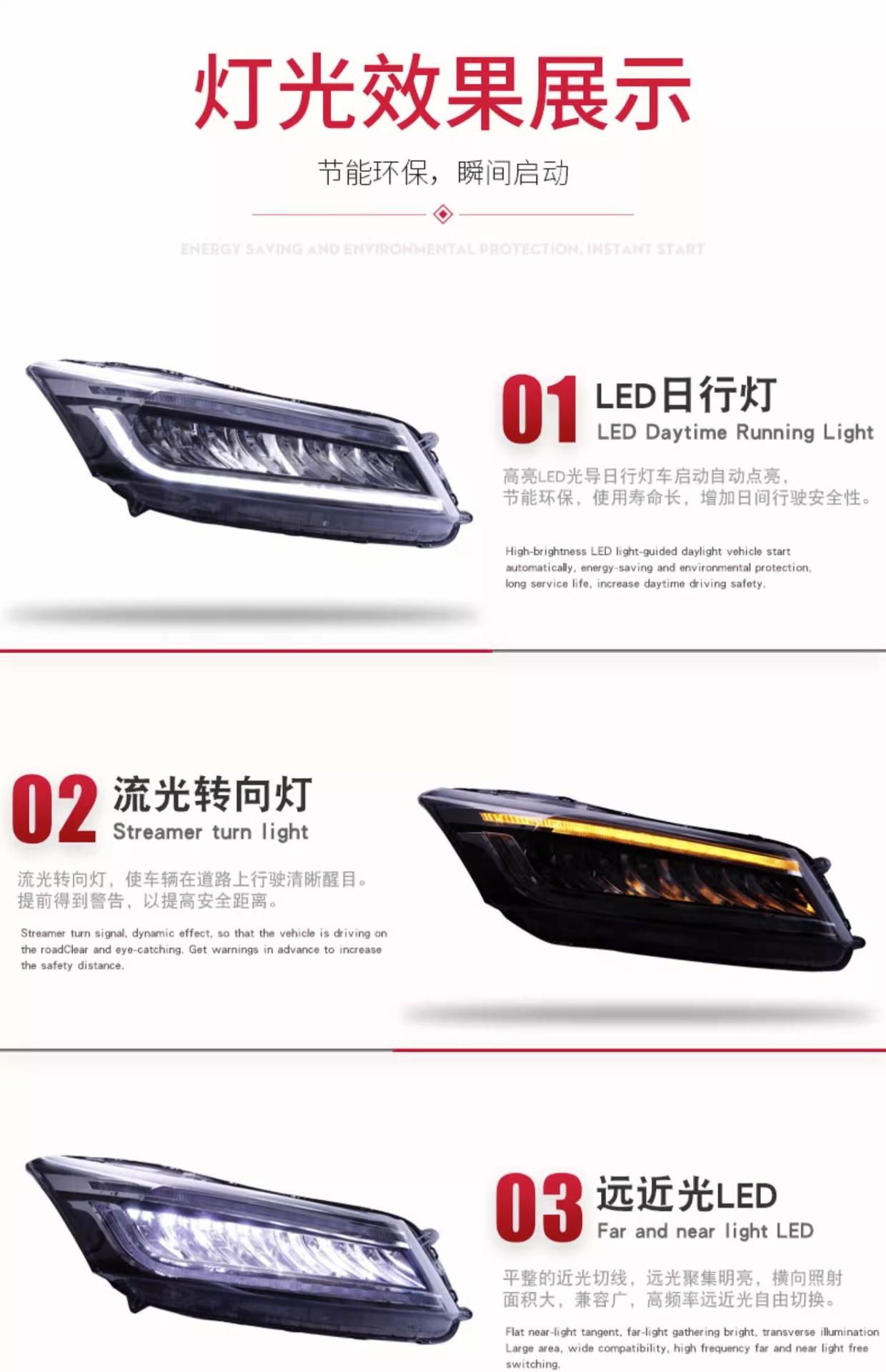 LED Headlight Assembly with DRL Sequential Turn Signal for Honda Accord 8th Gen 2008-2013