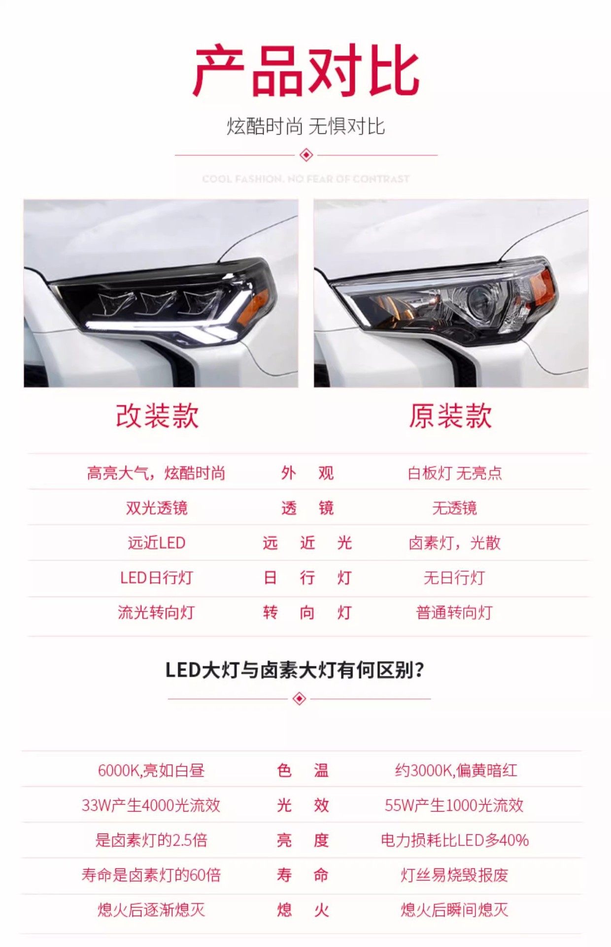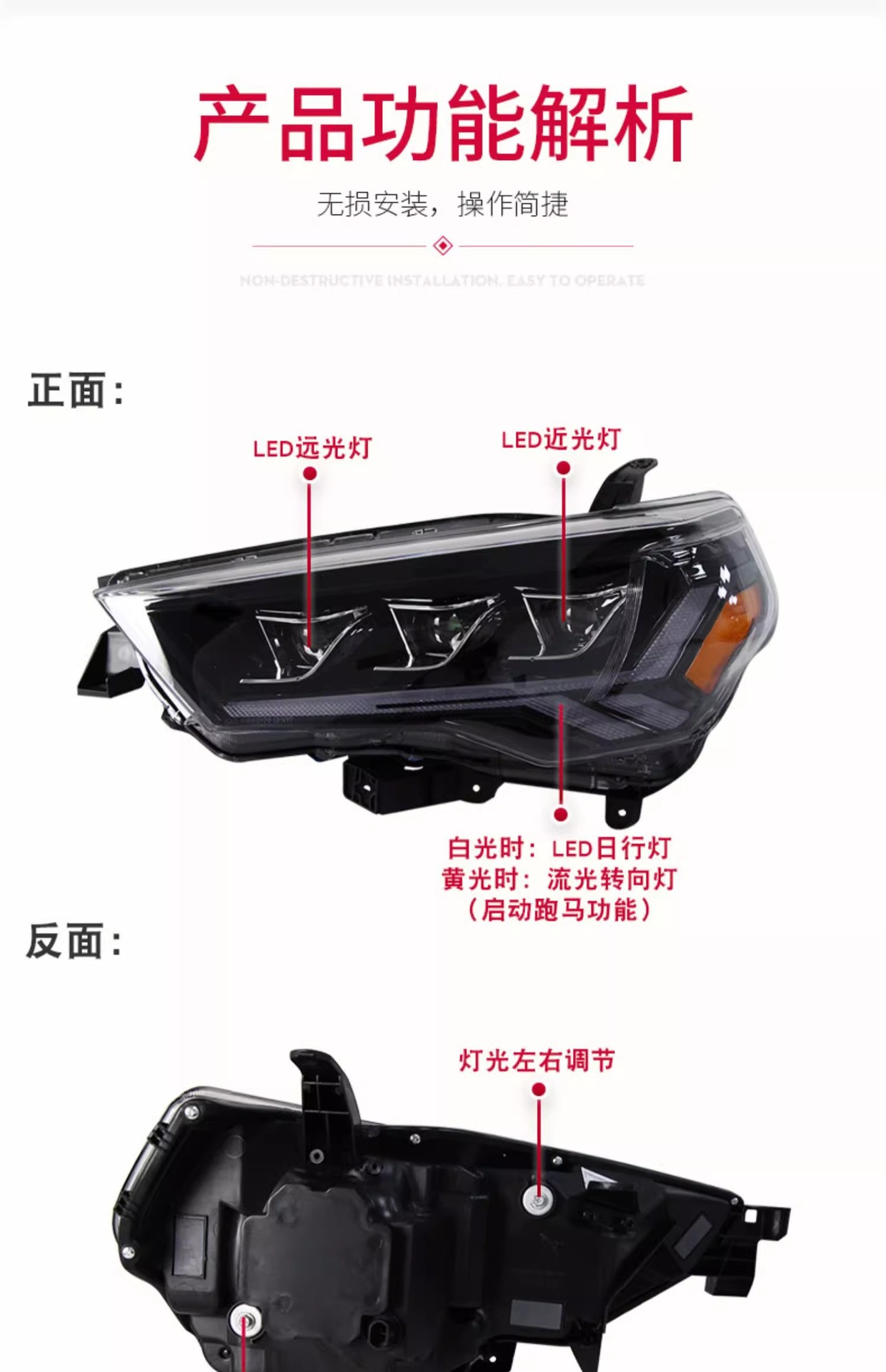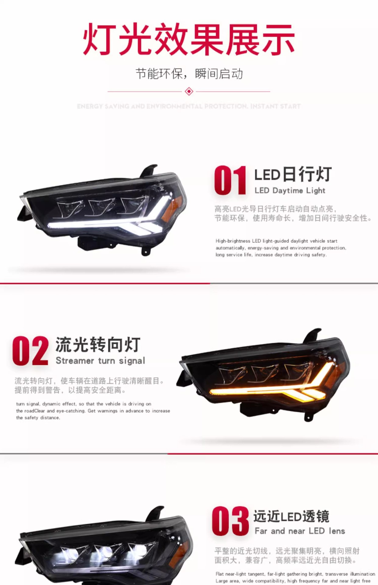LED Headlight Assembly with DRL Sequential Turn Signal for Toyota 4Runner 2014-2020