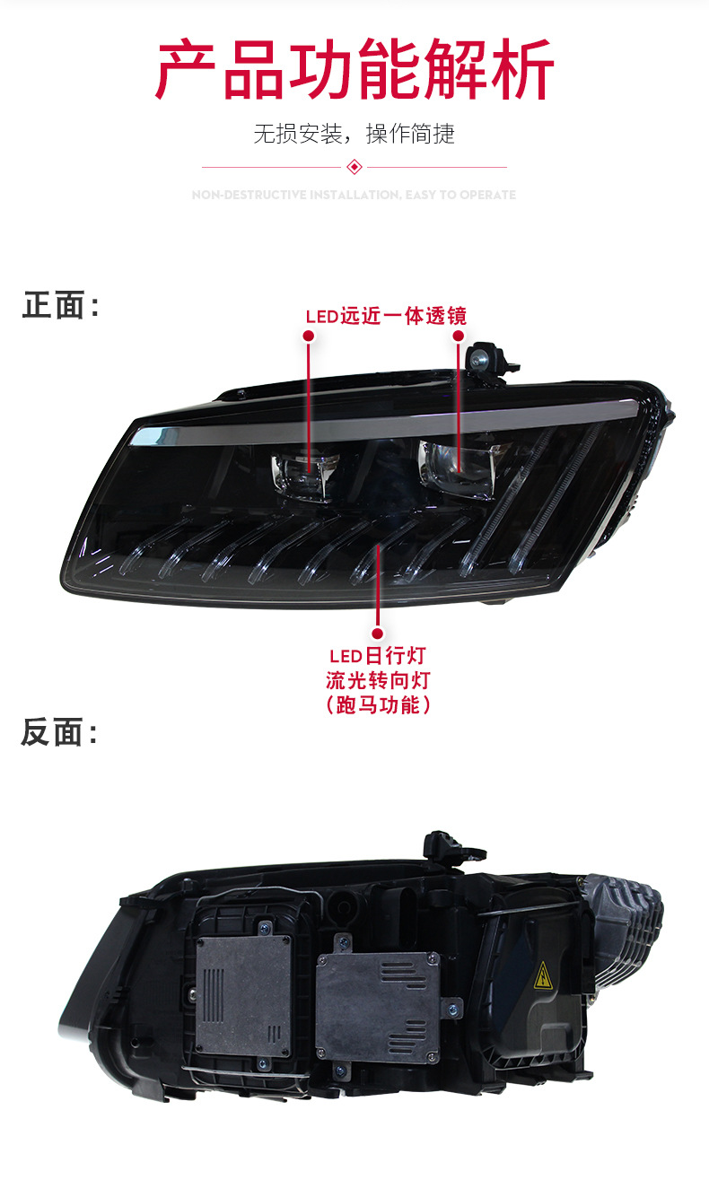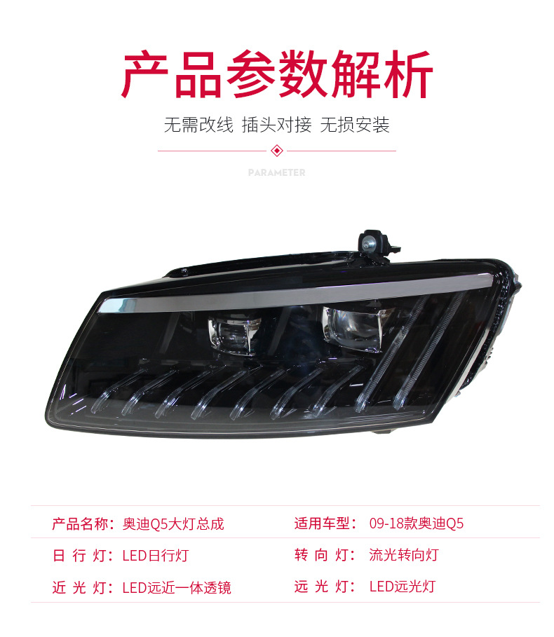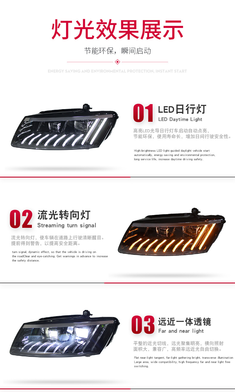 LED Headlight Assembly with DRL Sequential Turn Signal for Audi Q5 2008-2018
