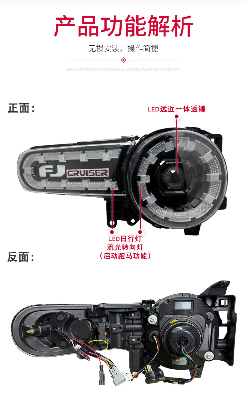 - Complete Package: This listing is for a single FJ Cruiser full LED headlight assembly, exactly as pictured. Please verify fitment details before purchasing.