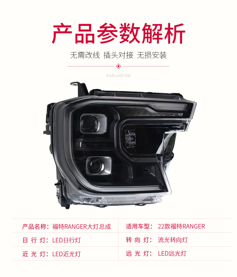 LED Headlight Assembly with DRL Turn Signal for Ford Ranger T9 Everest 2023