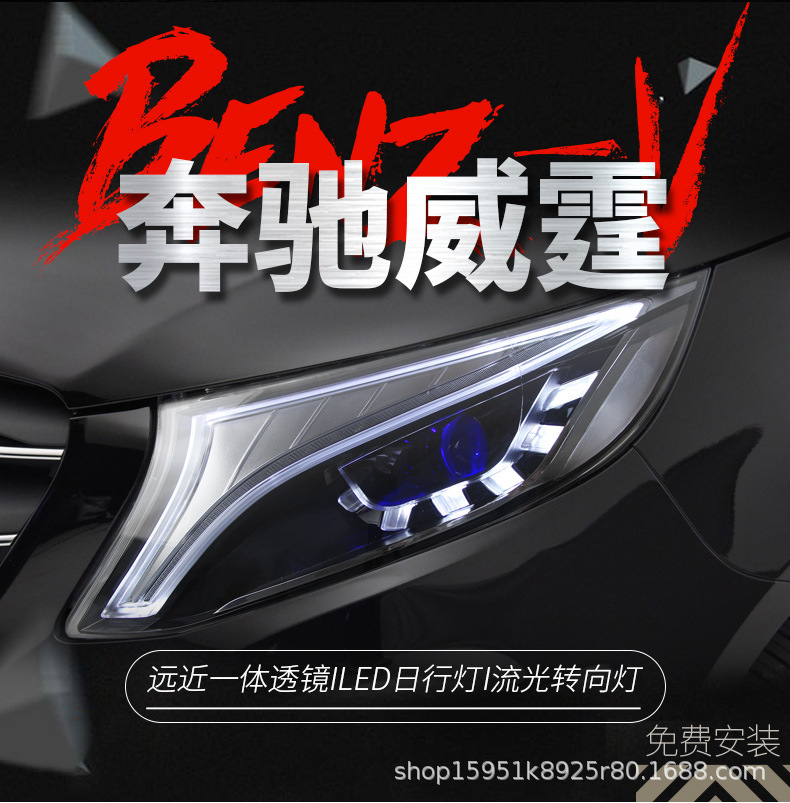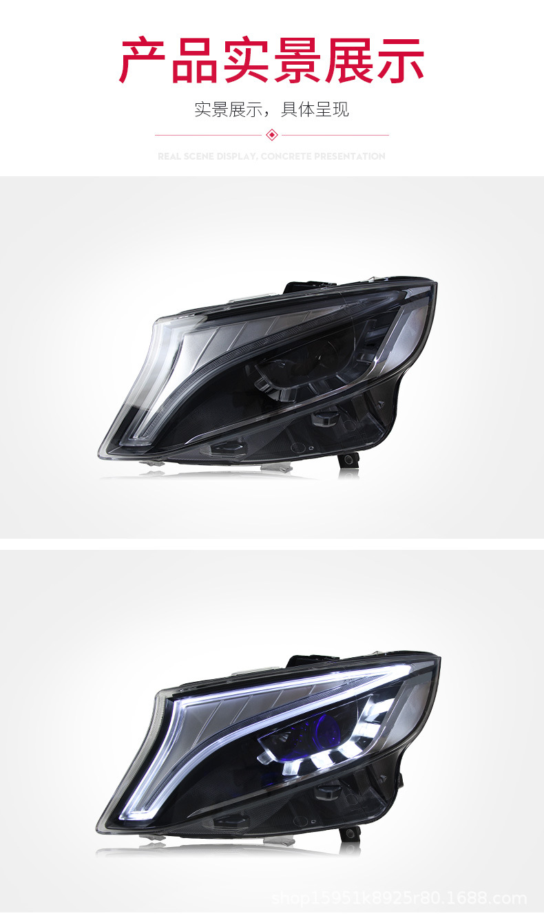 LED Headlight Assembly with Daytime Running Lights Sequential Turn Signal for Mercedes-Benz V-Class Vito Metris