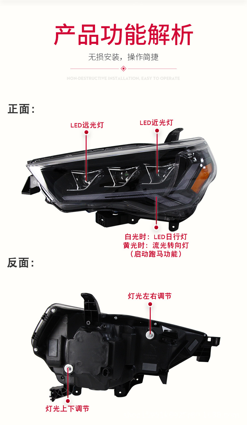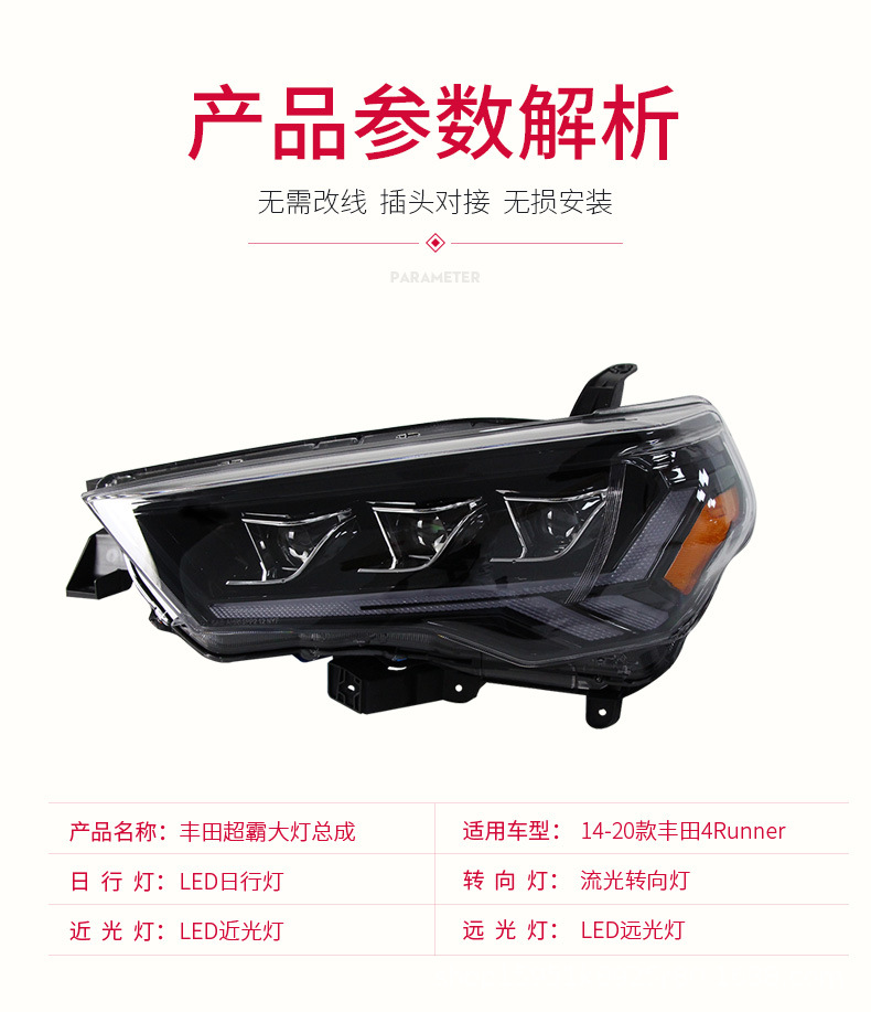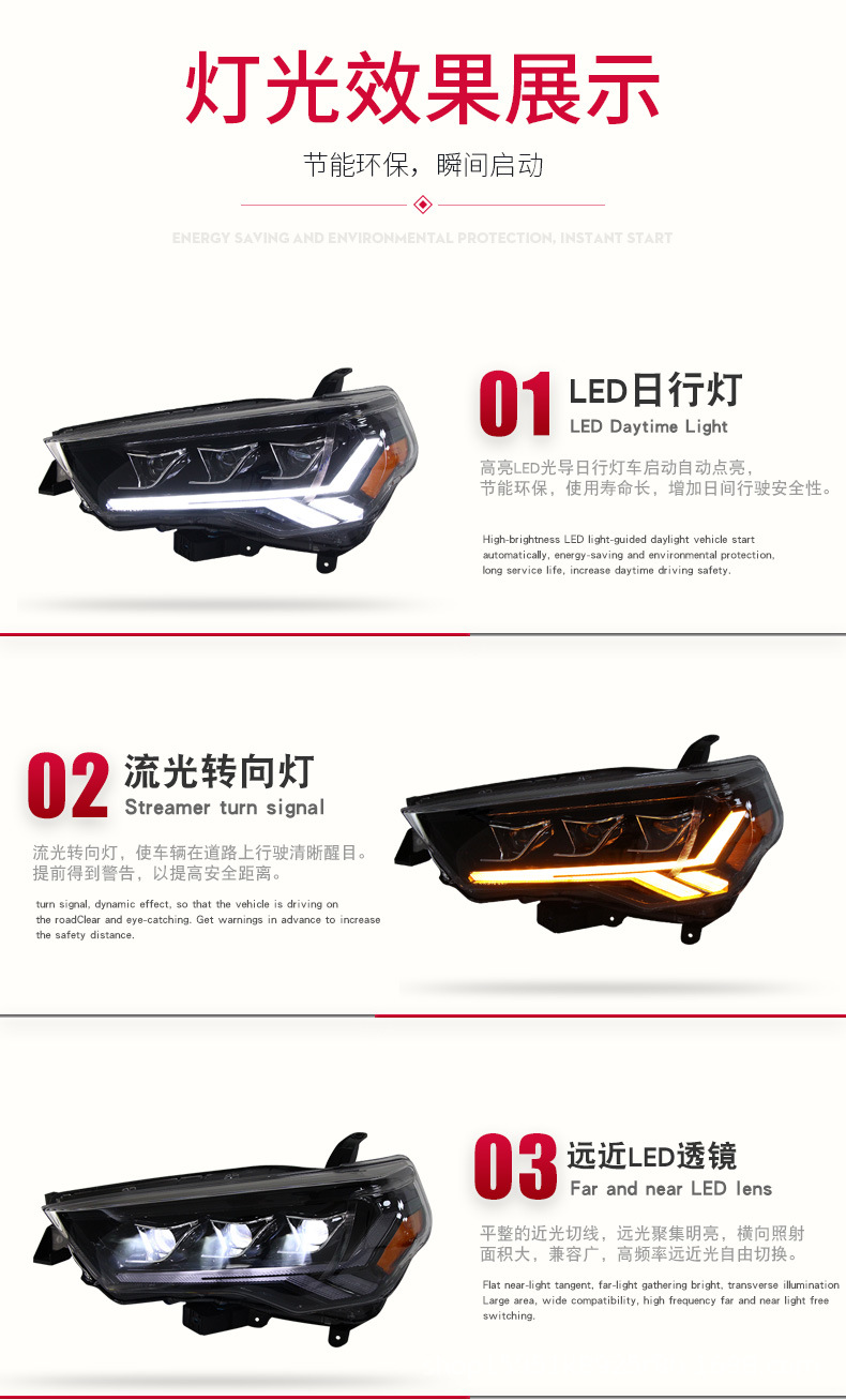 LED Headlight Assembly with Daytime Running Light Flowing Turn Signal for Toyota 4Runner (2014-2023)