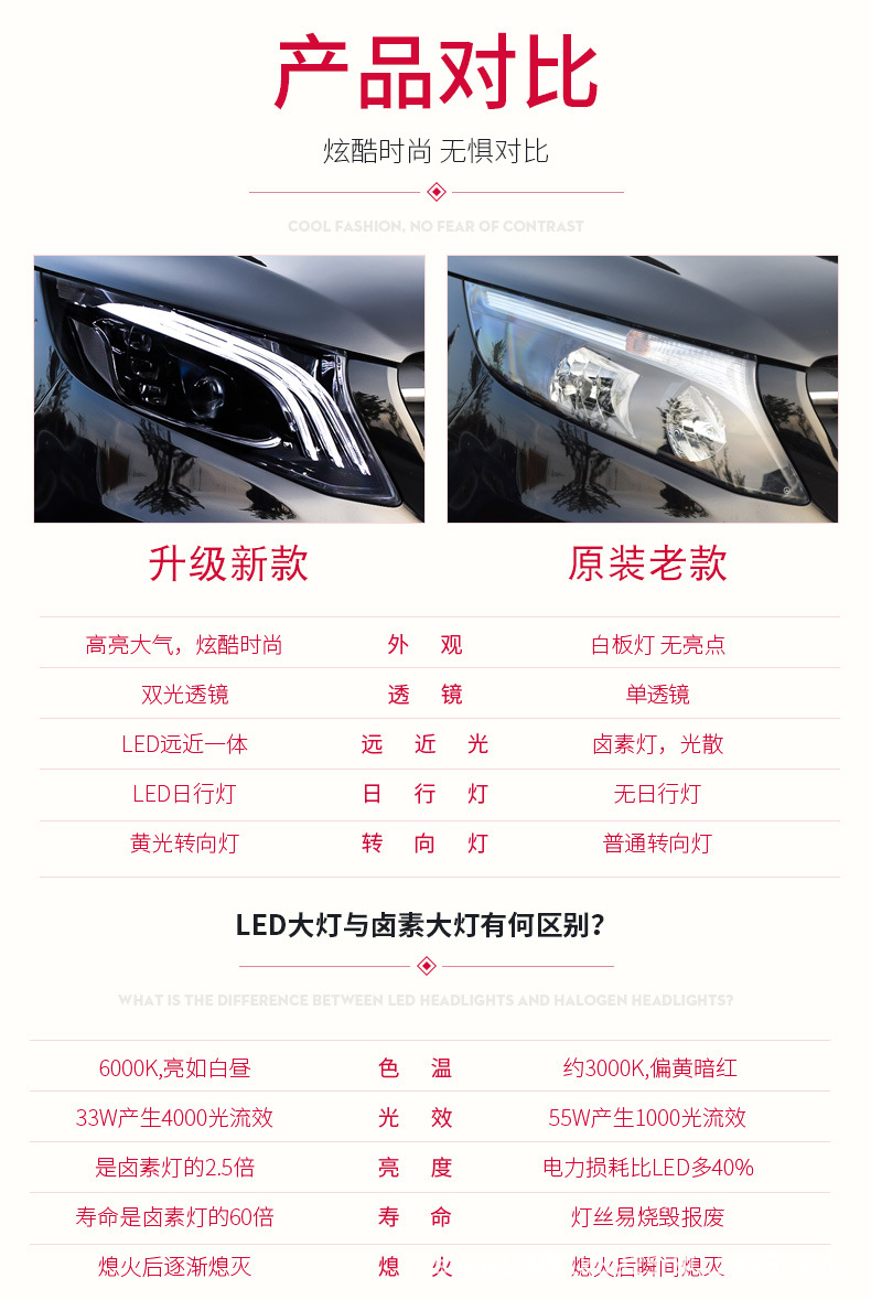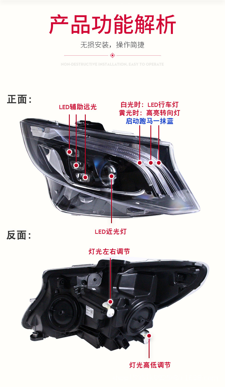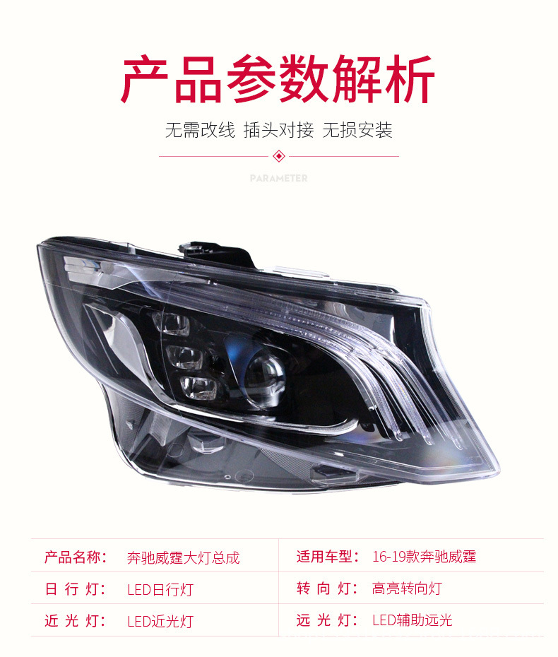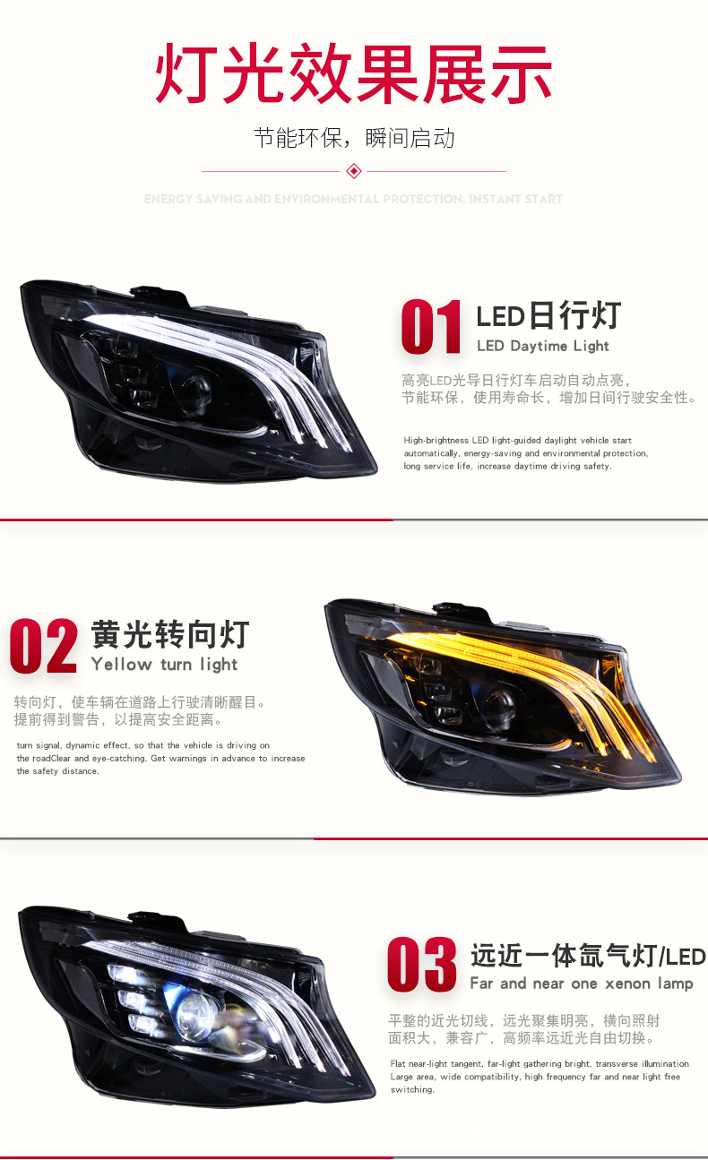 - Package Includes: Full set of LED headlight assemblies (left and right), designed to provide superior illumination and transform your V-Class’s front end appearance.