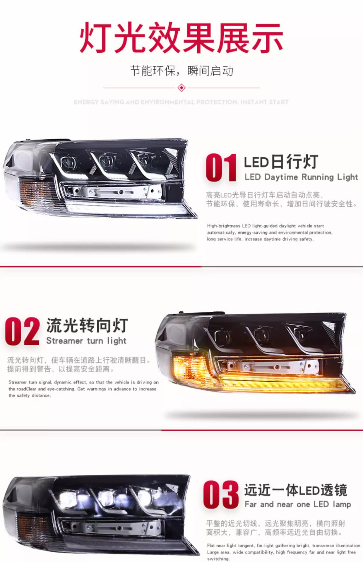 - Enhanced Aesthetics & Safety: Integrated with bright LED Daytime Running Lights (DRL) and dynamic flowing turn signals, significantly improving vehicle visibility for safer driving while giving your Land Cruiser a modern, distinctive look.