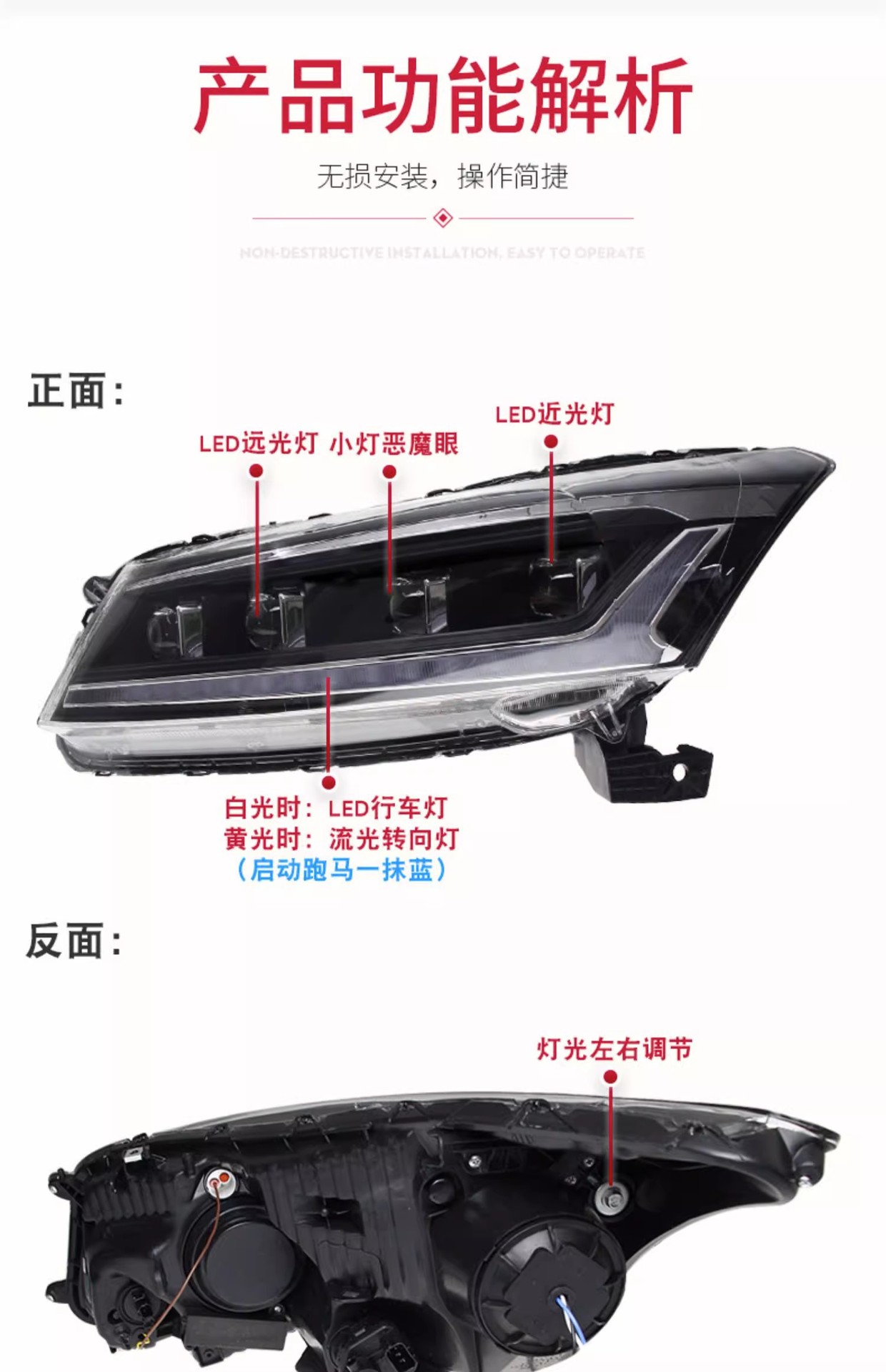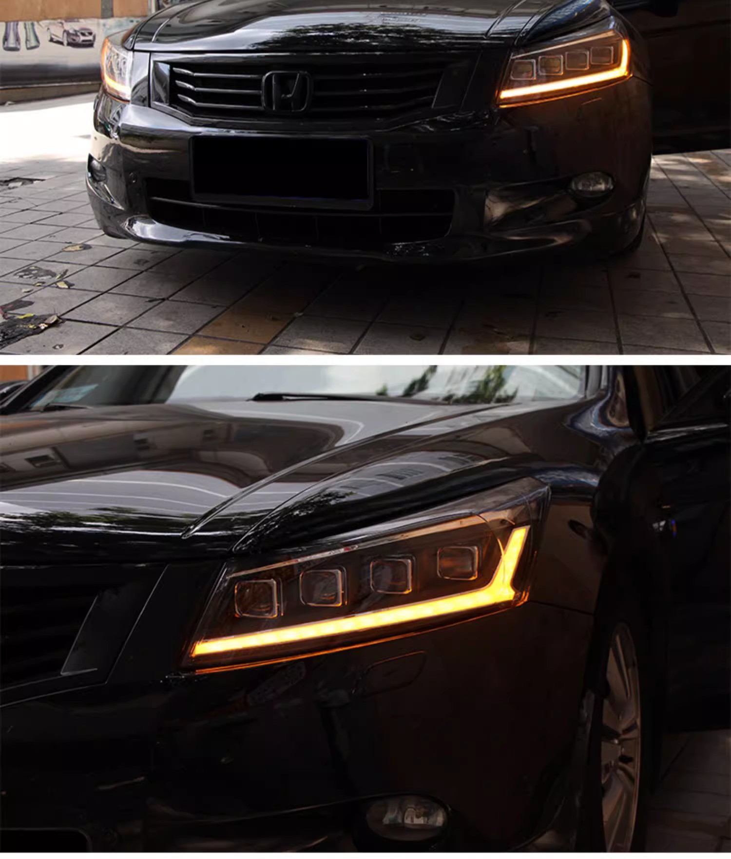 LED Headlight Assembly with Daytime Running Lights Devil Eye Flowing Turn Signal for Honda Accord 8th Gen 2008-2013