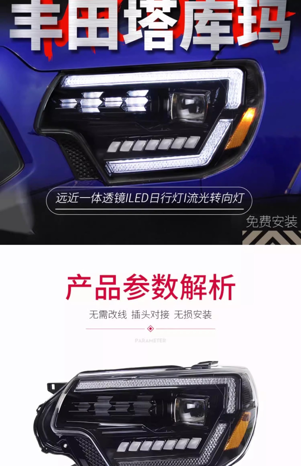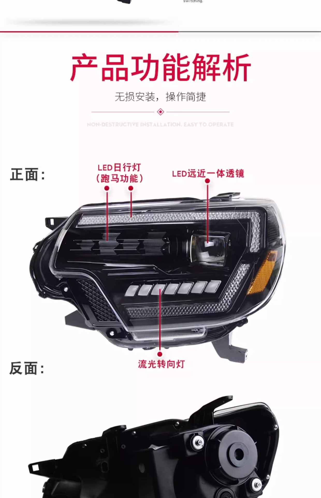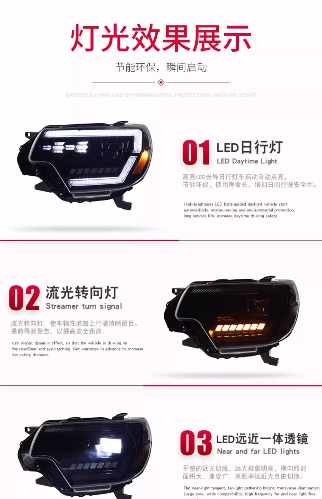 LED Headlight Assembly with Daytime Running Lights Sequential Turn Signal for Toyota Tacoma 2012-2015