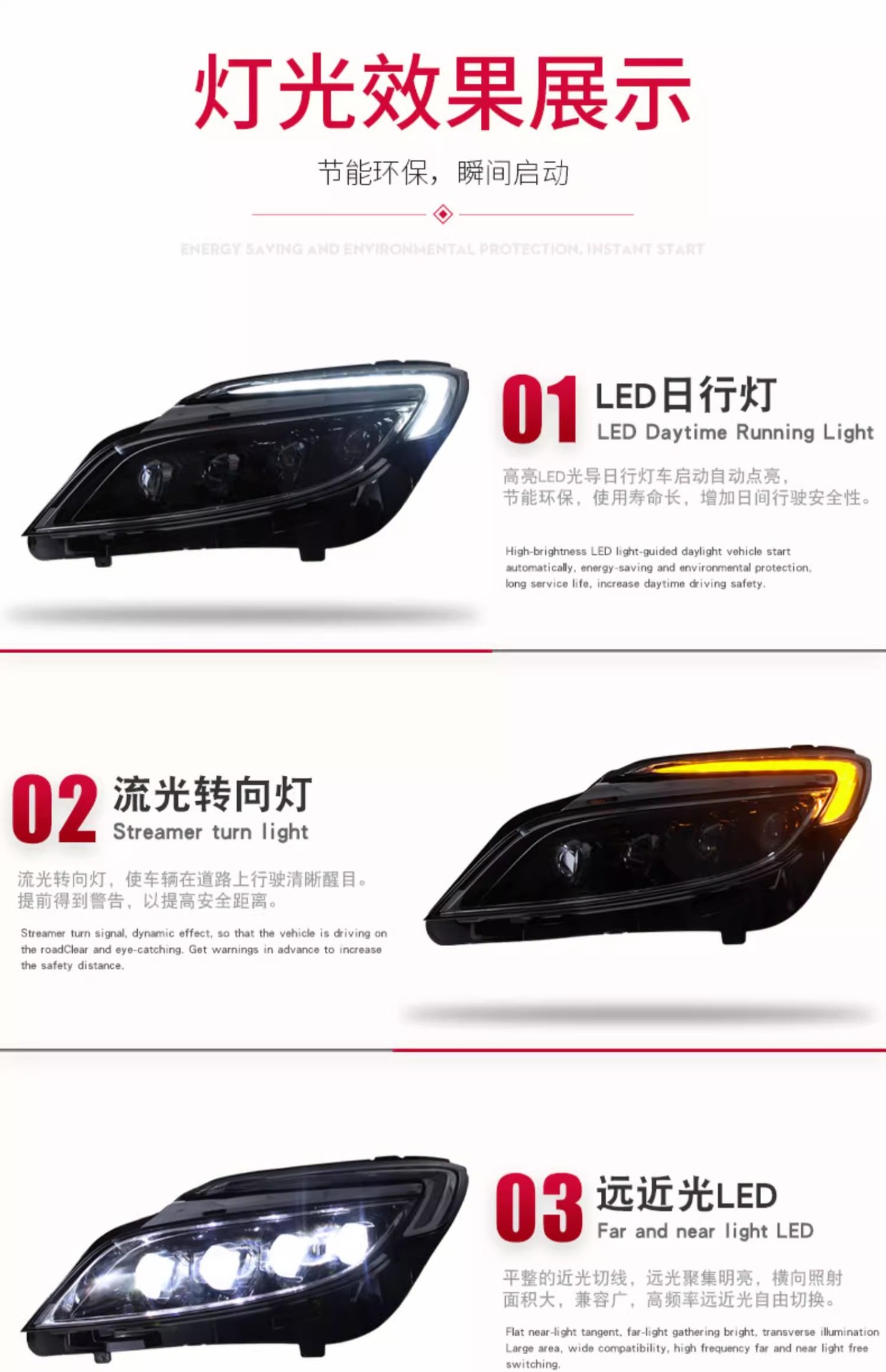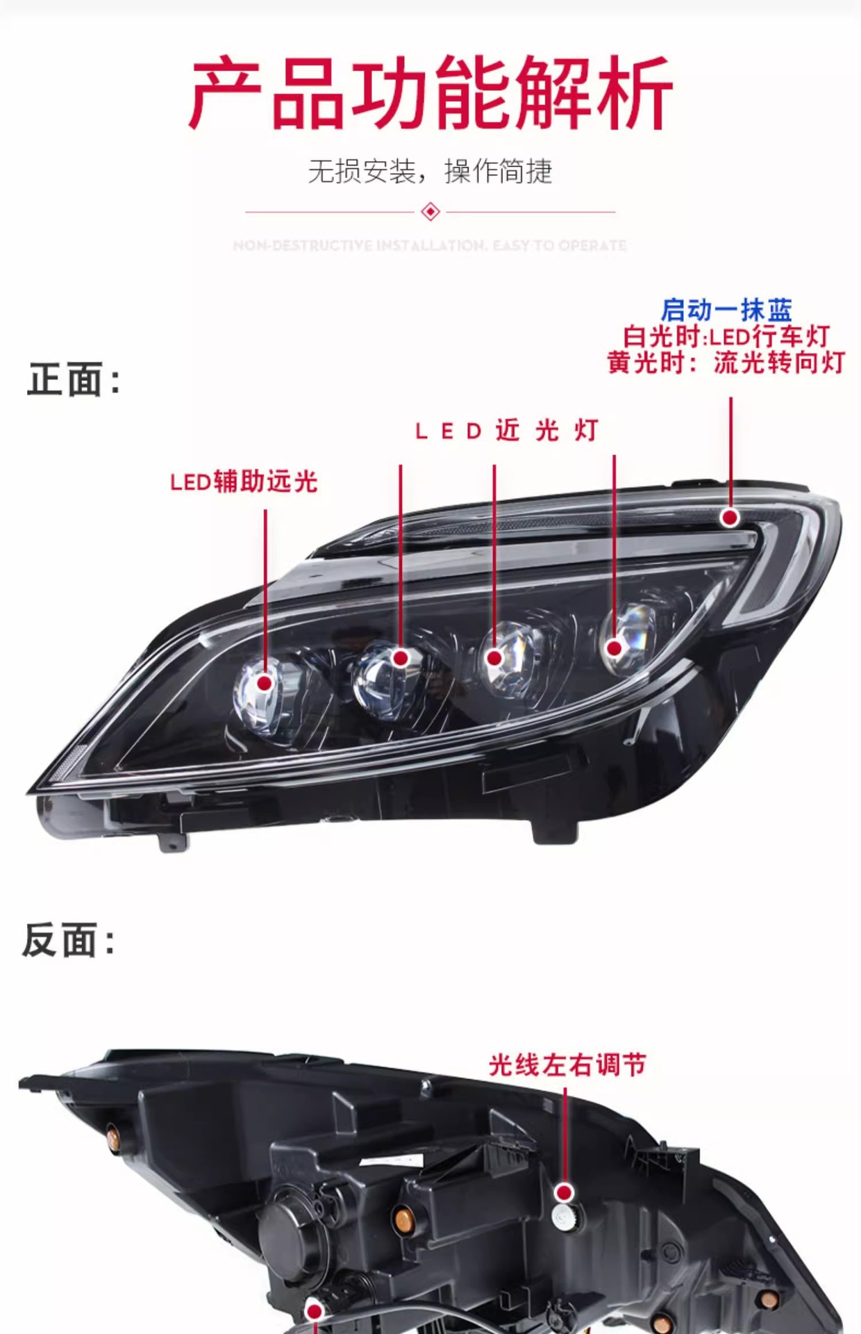 LED Headlight Assembly with Daytime Running Light and Sequential Turn Signal for Buick GL8 2018-2020