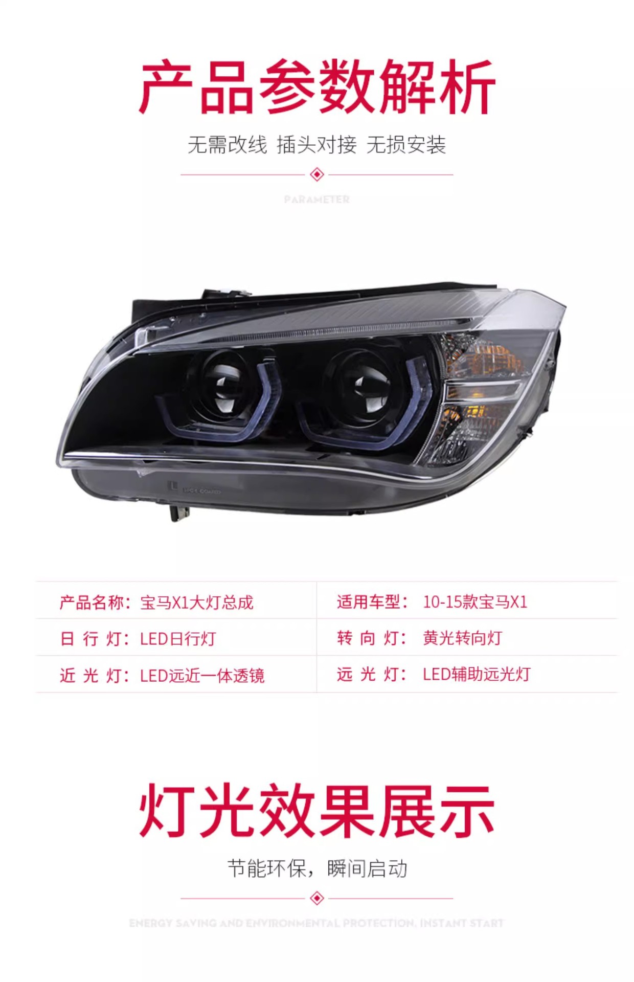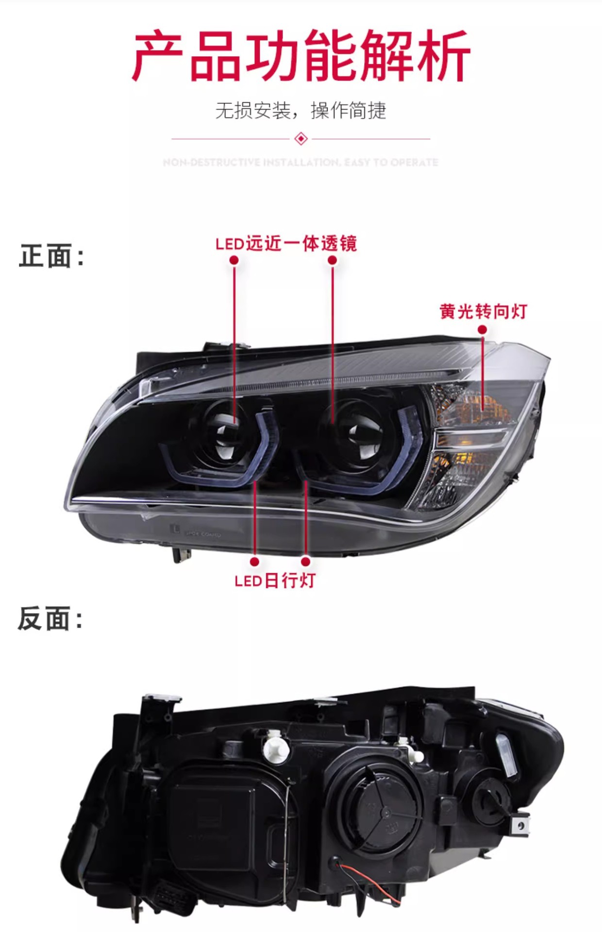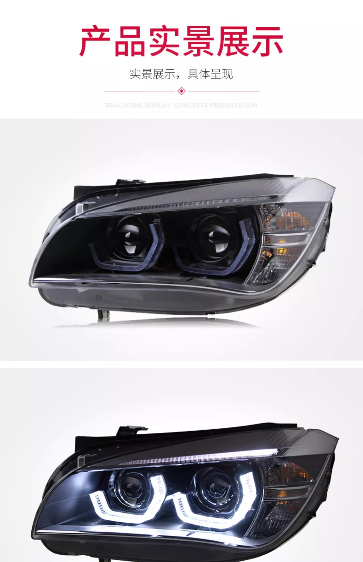 LED Headlight Assembly with Dual Beam Projector & Daytime Running Lights for BMW X1 E84 2010-2015 1 Pair