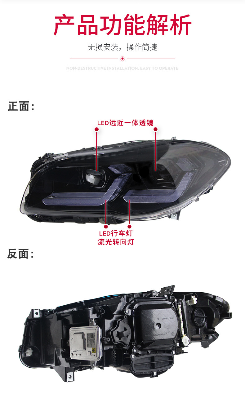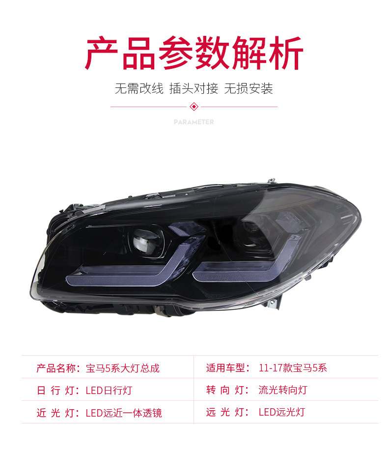 LED Headlight Assembly with Dual LED DRL Lens for BMW 5 Series F10 F18 (2011-2017)
