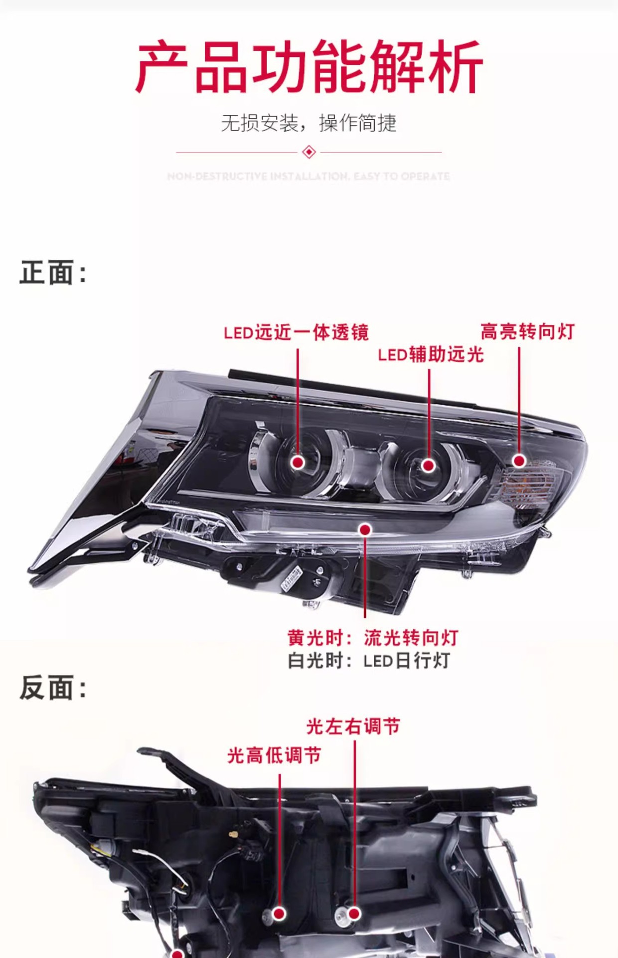 - Integrated Design: Includes a full LED headlight assembly with high and low beam in one unit, exactly as pictured. Please verify fitment details before purchasing.