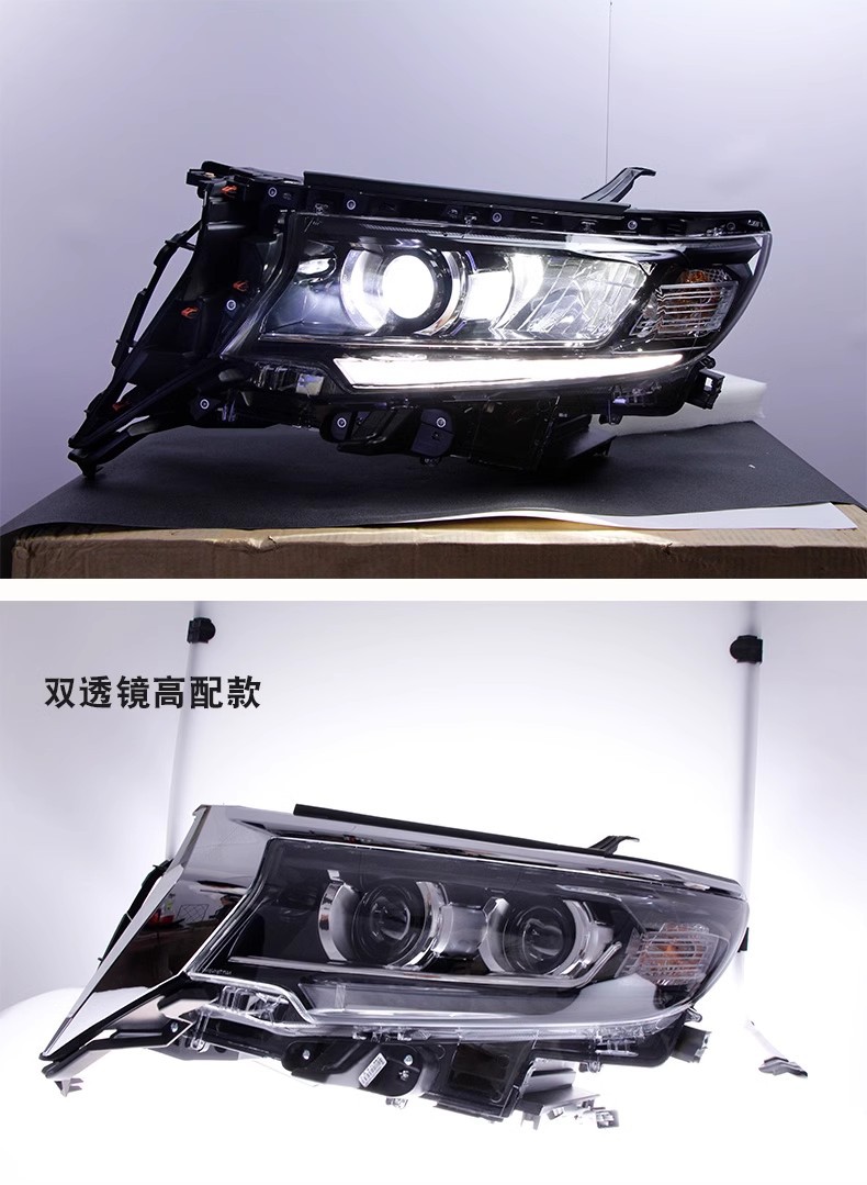 LED Headlight Assembly with Dual Projector Lens DRL Flowing Turn Signal for Toyota Prado 2018-2019